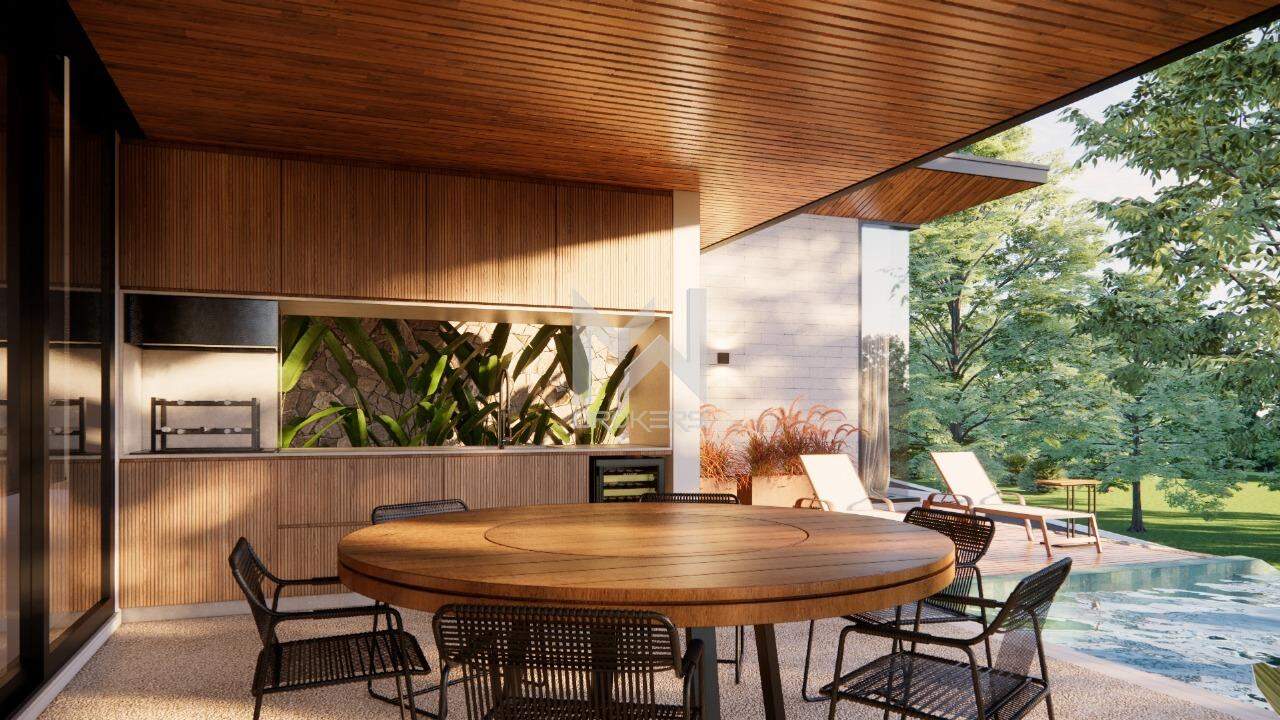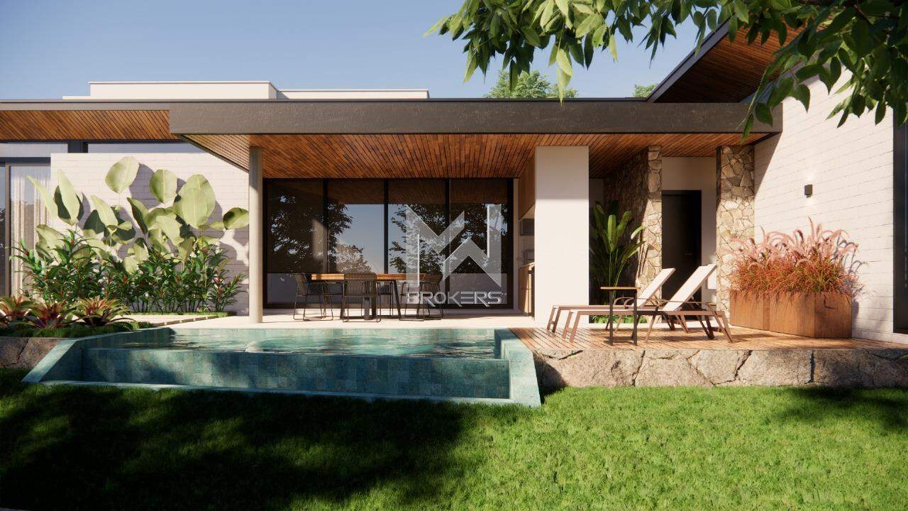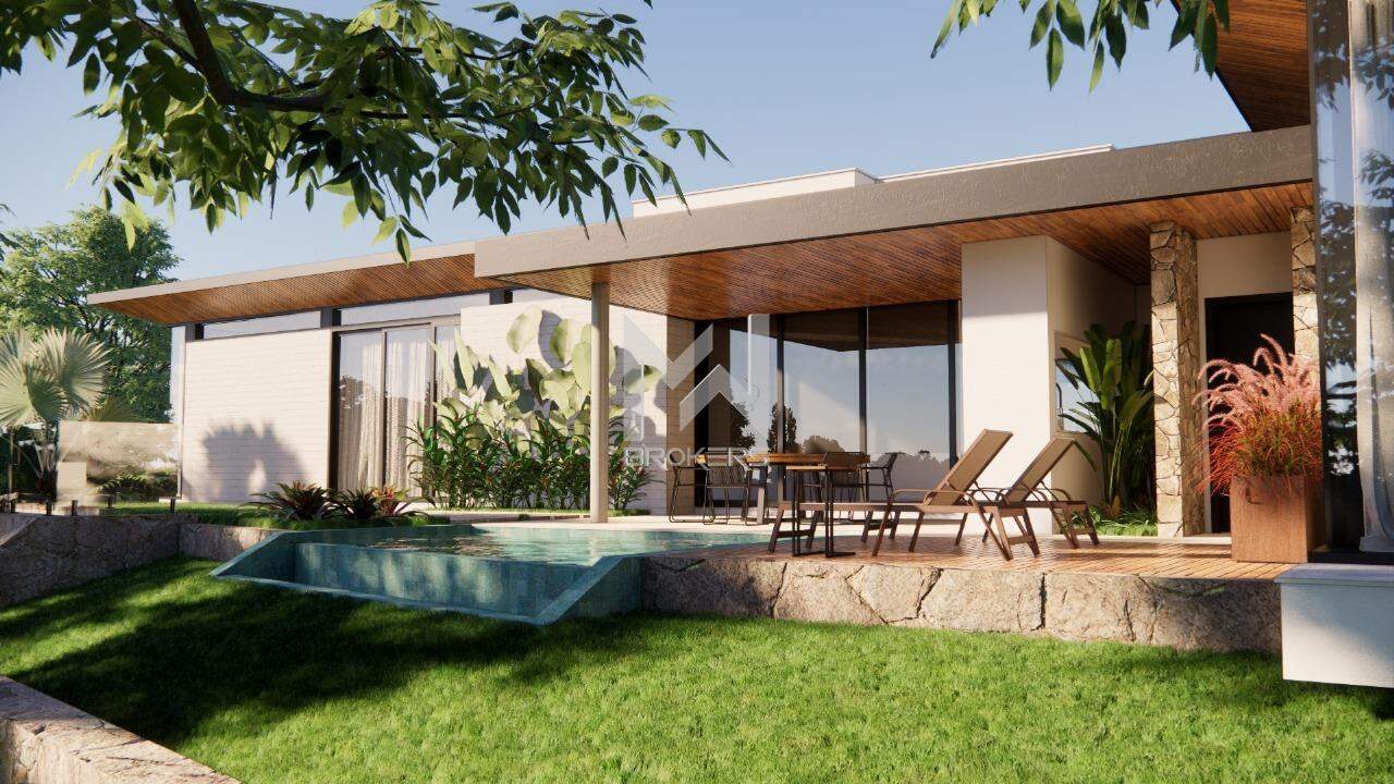 Sala de estar integrada à sala de refeições e cozinha, lavabo, escritório, área gourmet, quintal gramado e piscina (preparada para aquecimento) com vista para a mata e lago. Área íntima com 03 dormitórios, todos suítes, sendo uma master com closet.