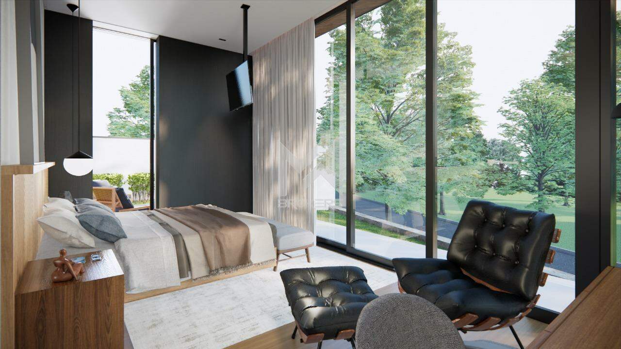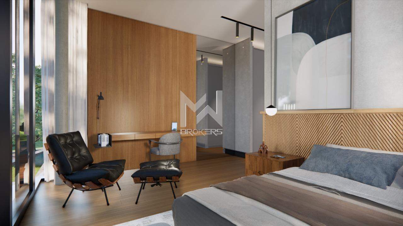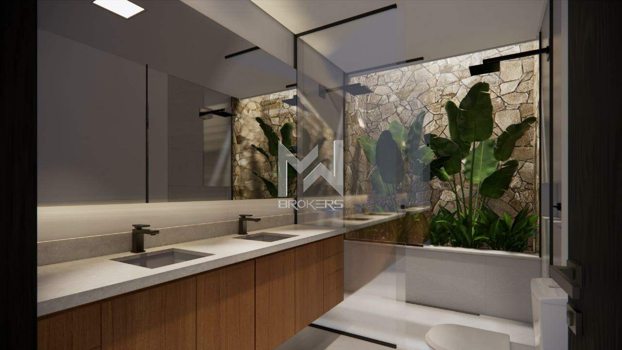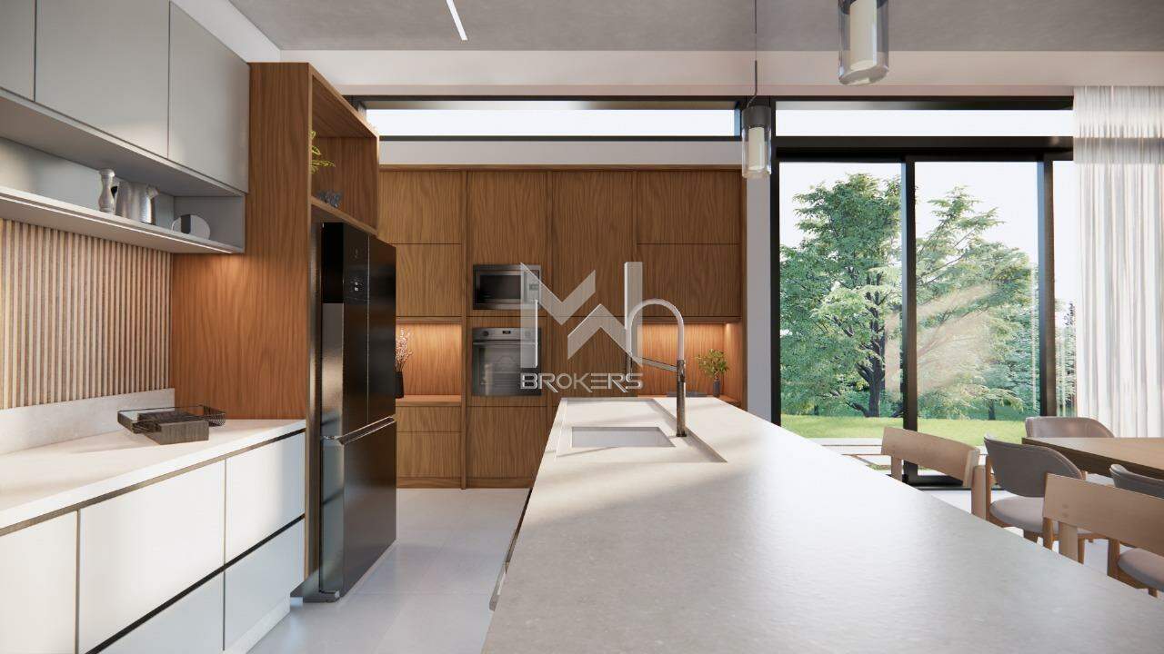 Sala de estar integrada à sala de refeições e cozinha, lavabo, escritório, área gourmet, quintal gramado e piscina (preparada para aquecimento) com vista para a mata e lago. Área íntima com 03 dormitórios, todos suítes, sendo uma master com closet.