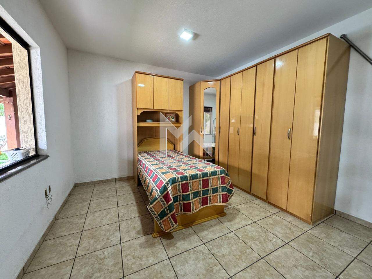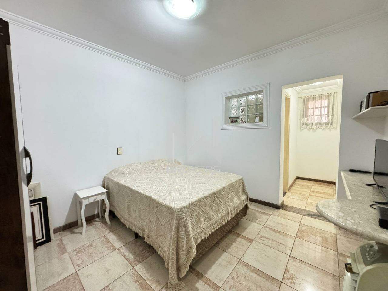 Nos fundos, piscina (5x10m), gramado e área gourmet com churrasqueira e forno de pizza, banheiro completo e mais 02 dormitórios, sendo 01 suíte e um dormitório reversível em escritório.