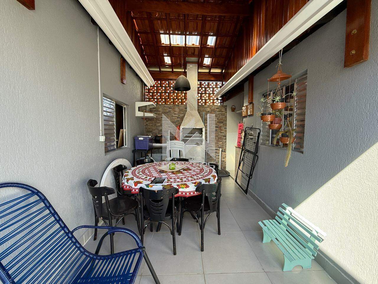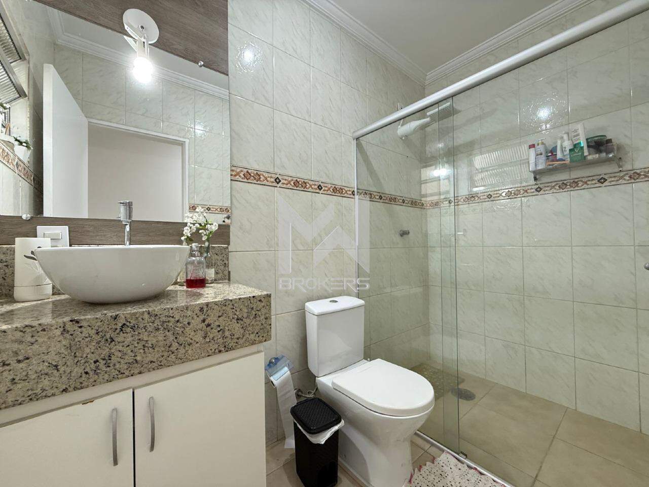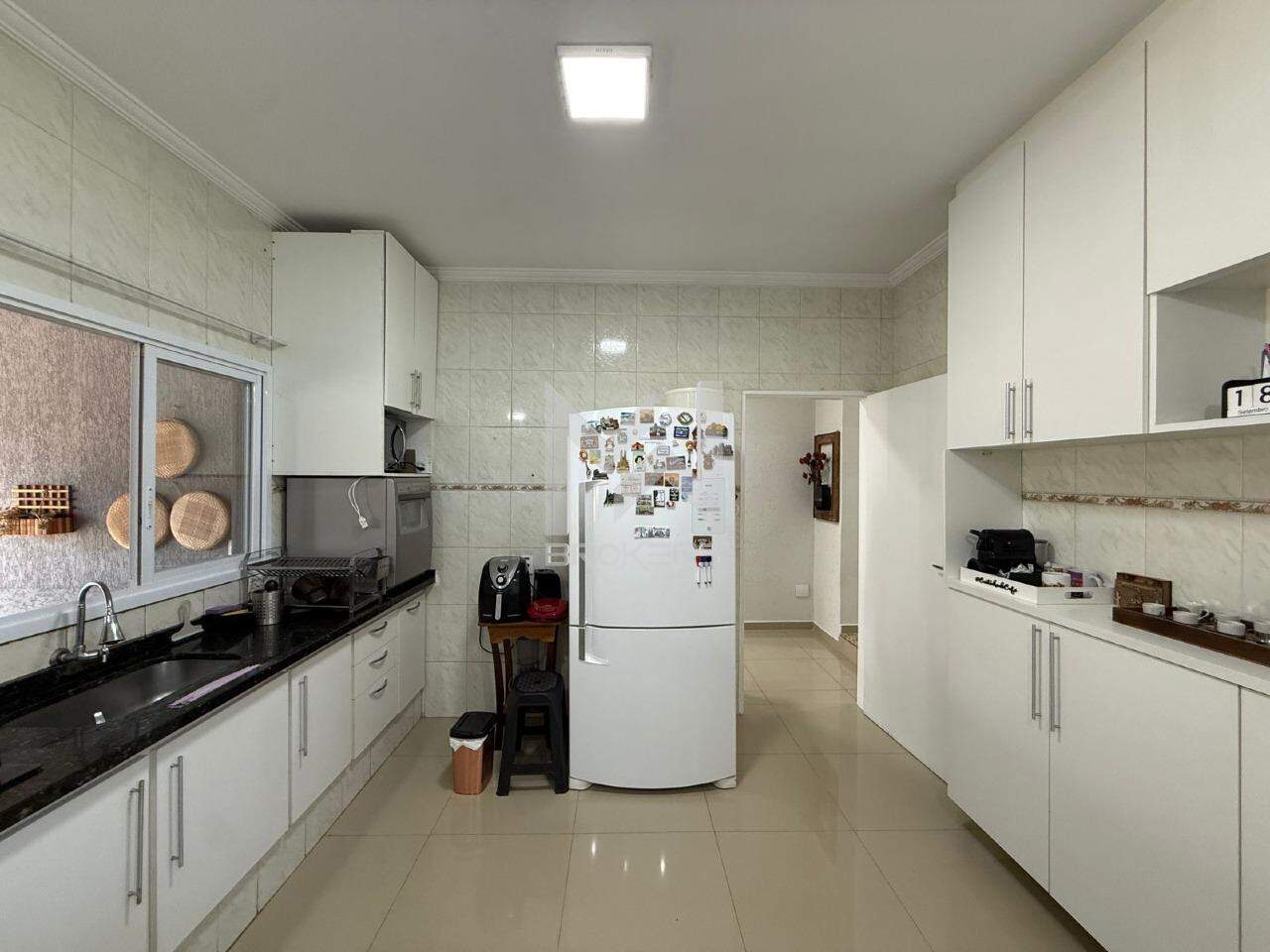 Sala de estar integrada à sala de refeições, escritório, cozinha planejada, área de serviços, banheiro social e área íntima com 03 dormitórios, sendo 01 suíte.