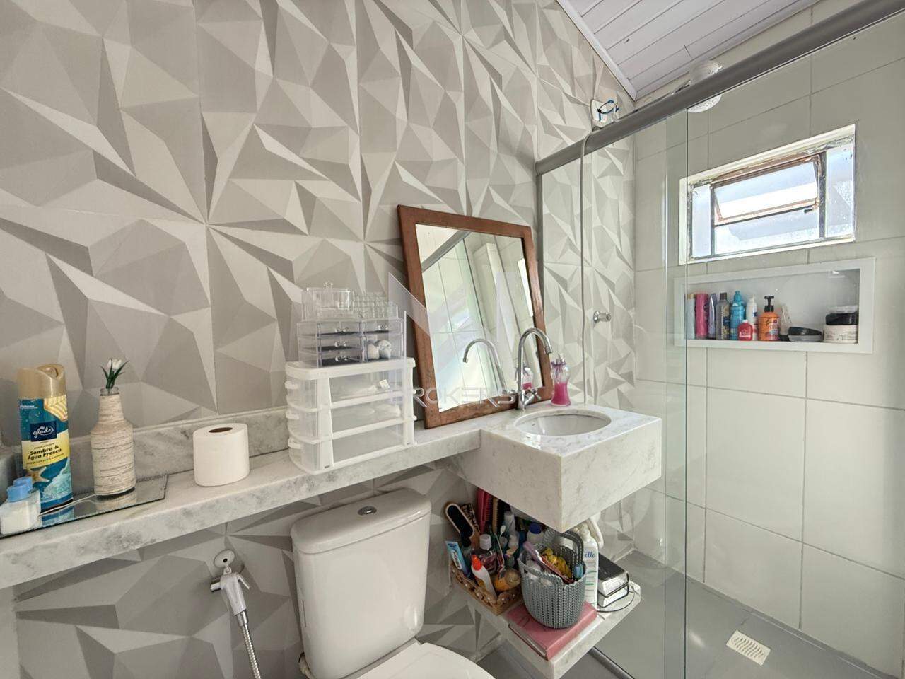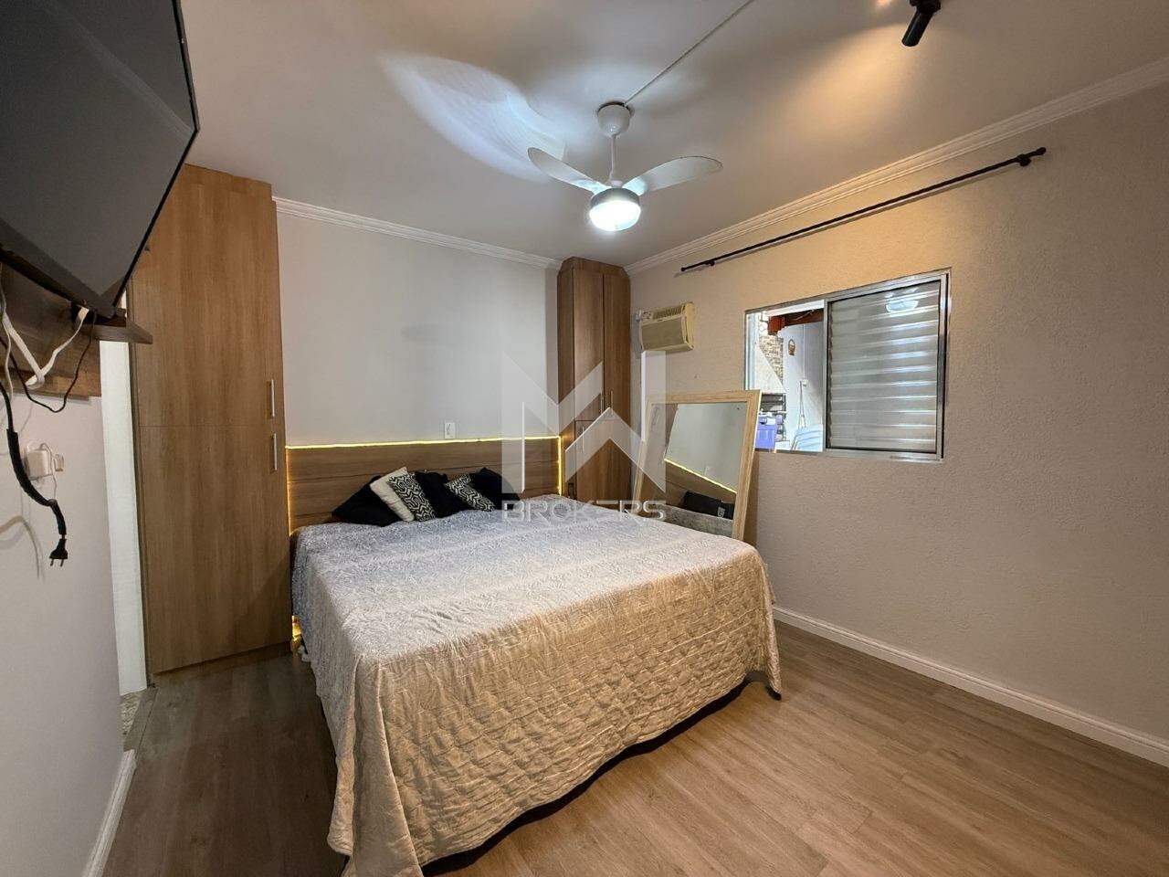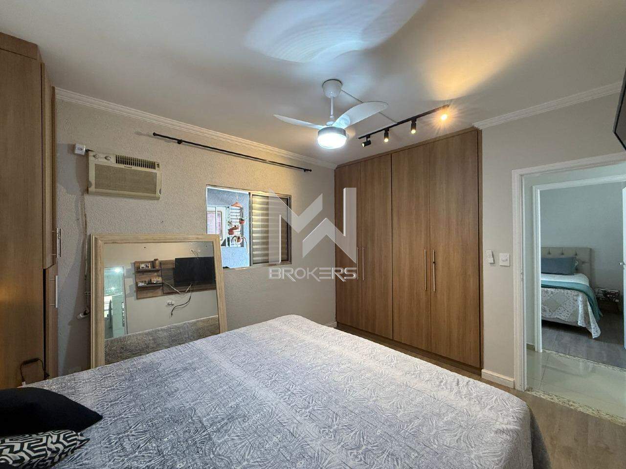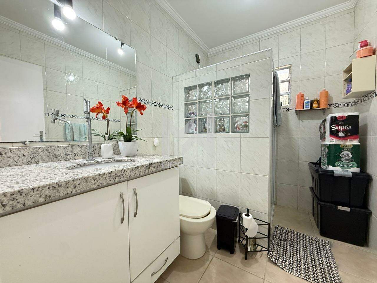 Sala de estar integrada à sala de refeições, escritório, cozinha planejada, área de serviços, banheiro social e área íntima com 03 dormitórios, sendo 01 suíte.