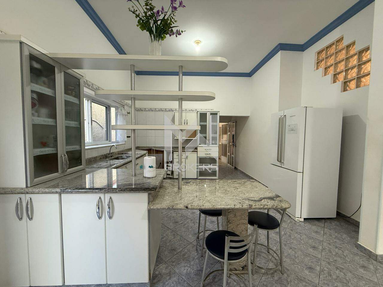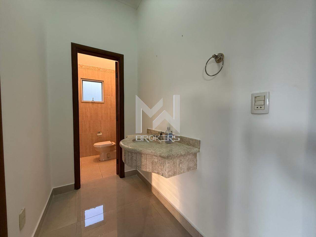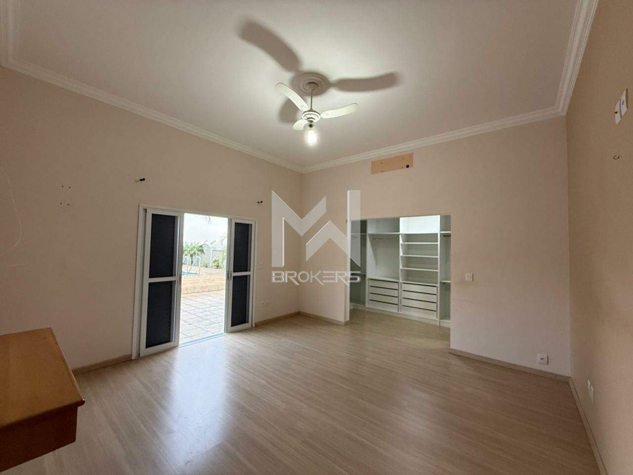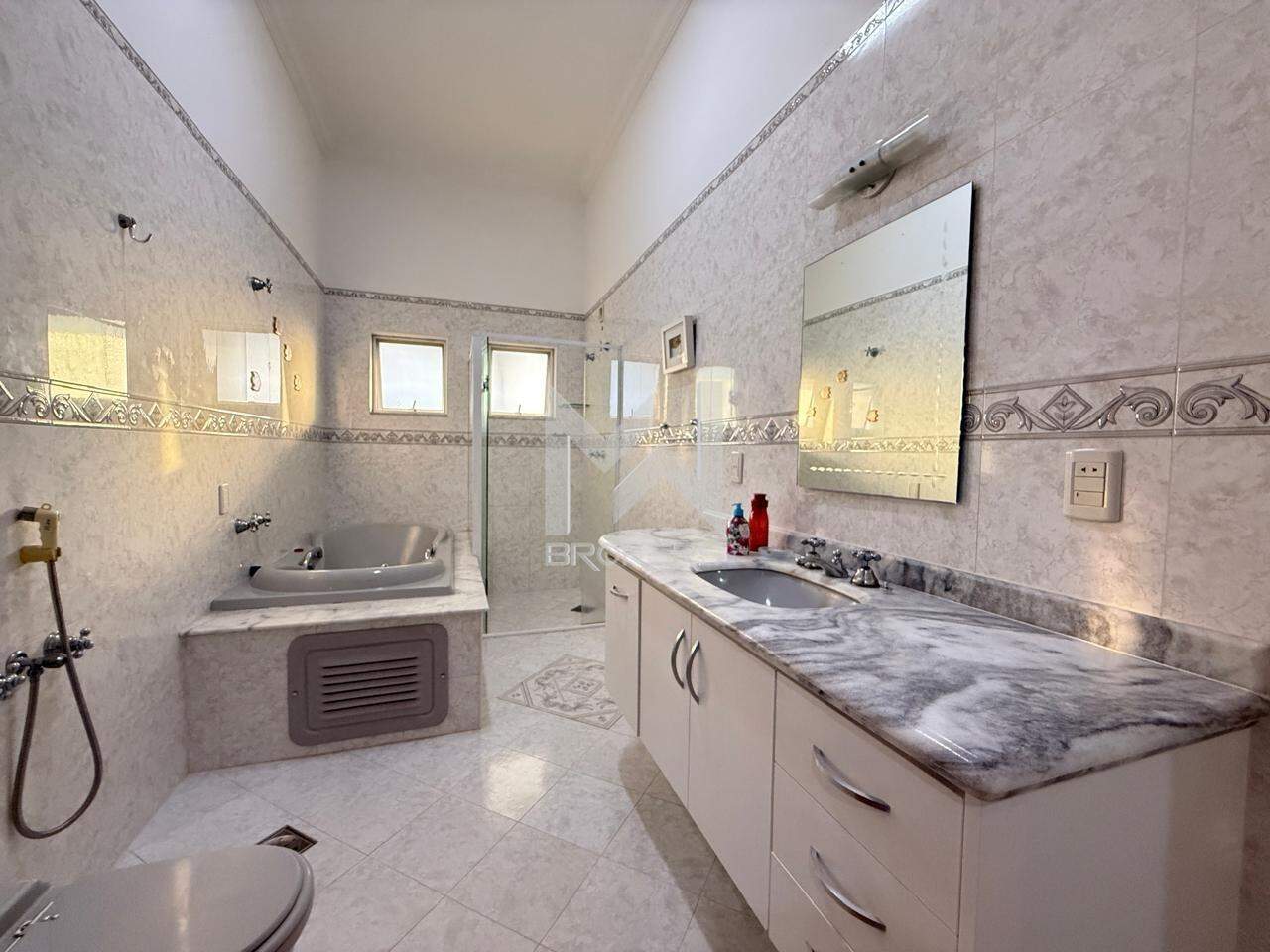 Sala de estar com lareira e varanda, lavabo, escritório, cozinha com copa e despensa, área de serviços e área gourmet integrada ao quintal com piscina aquecida com cascata, banheiro de apoio, mini campo de futebol gramado, pomar e depósito.