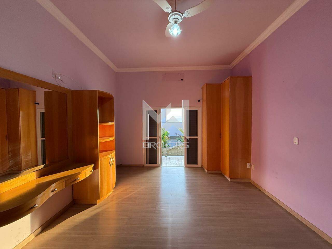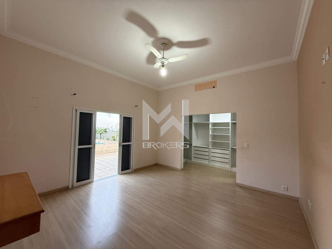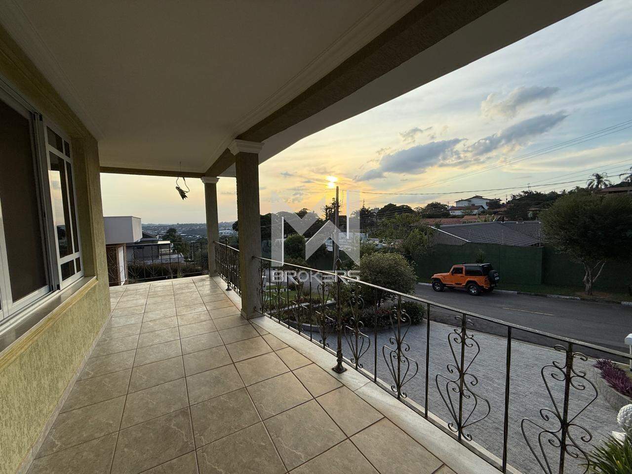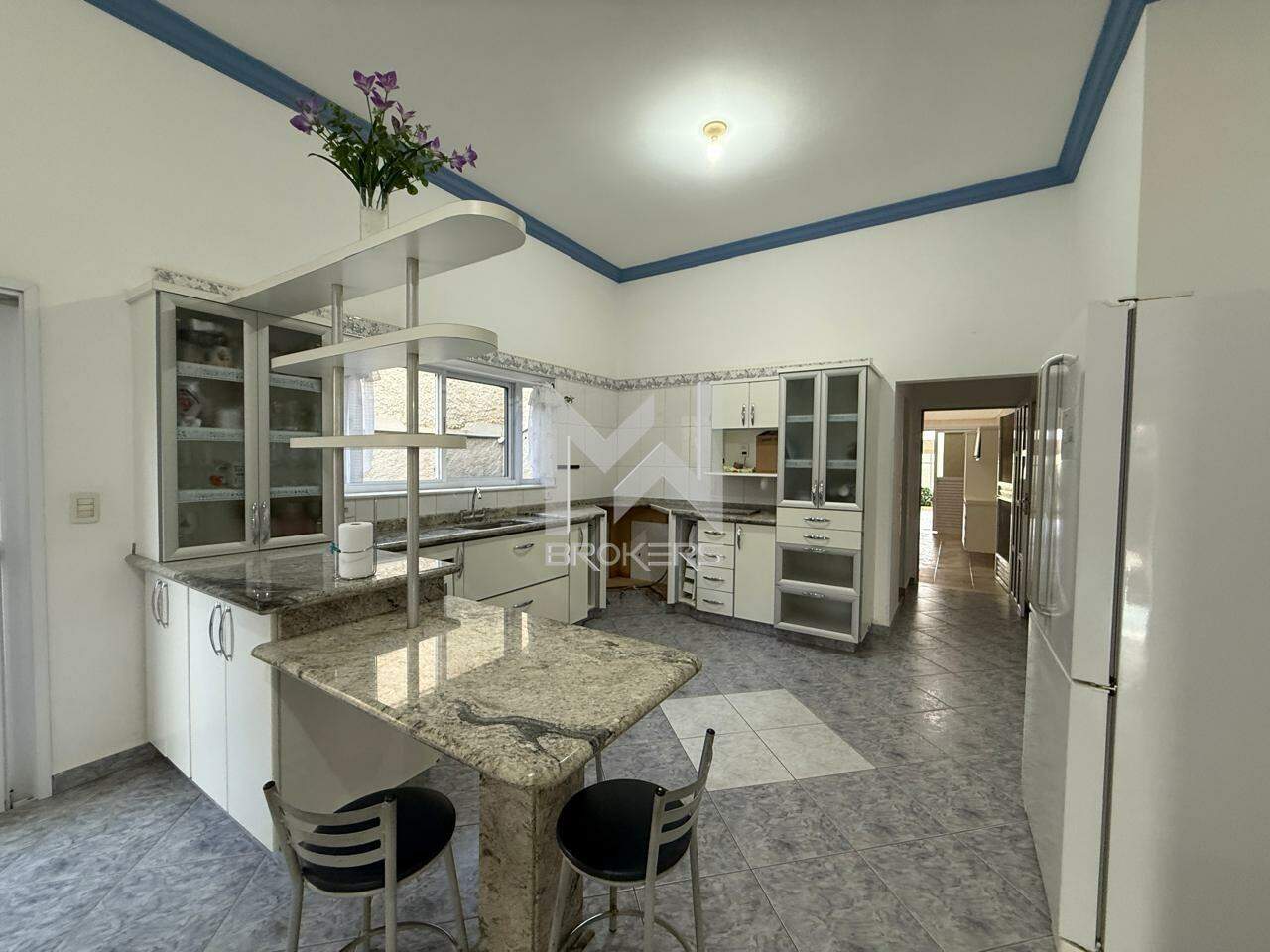 Sala de estar com lareira e varanda, lavabo, escritório, cozinha com copa e despensa, área de serviços e área gourmet integrada ao quintal com piscina aquecida com cascata, banheiro de apoio, mini campo de futebol gramado, pomar e depósito.