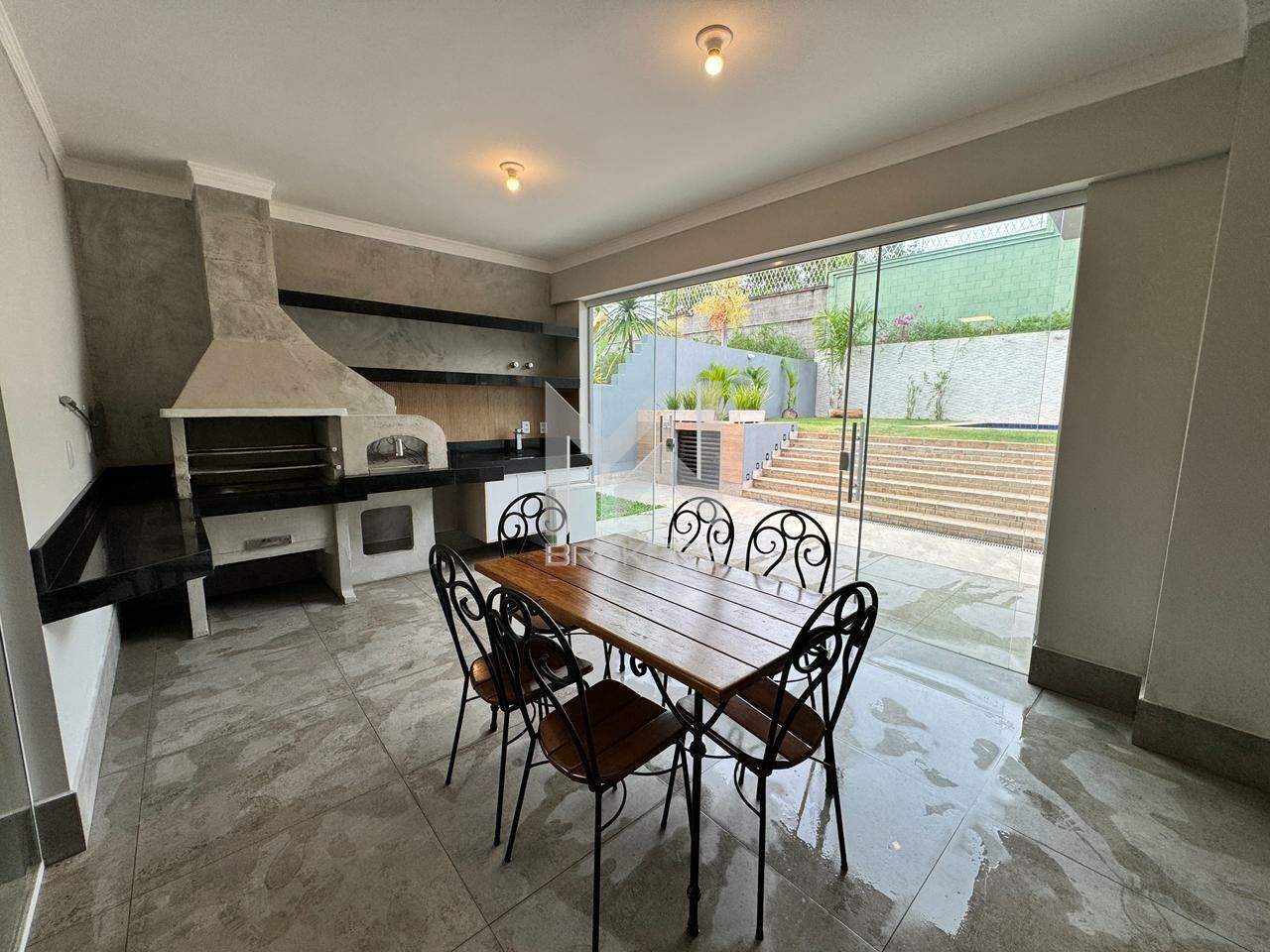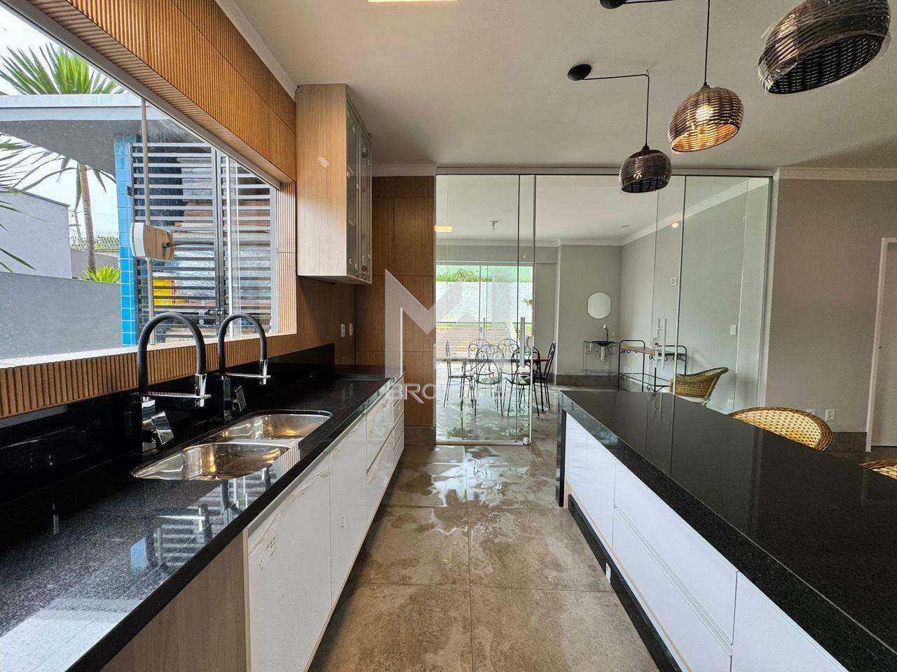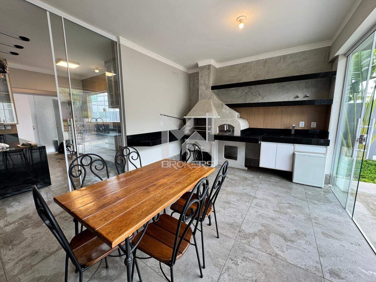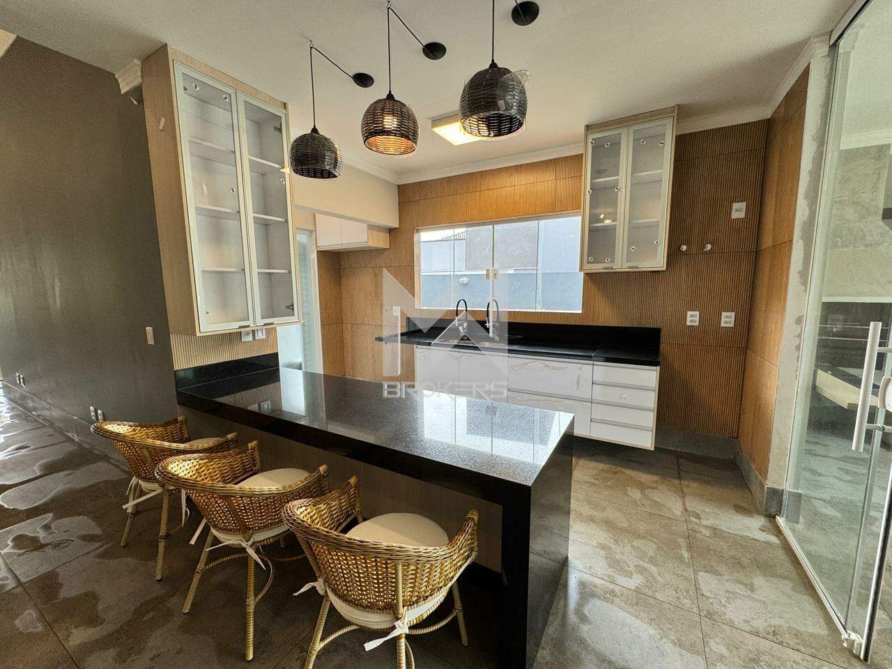O ambiente é composto por sala de estar e jantar, banheiro social, cozinha, área de serviços, escritório e área gourmet com churrasqueira, forno de pizza e banheiro de apoio. Além disso, conta com um amplo quintal gramado, e uma bela piscina.