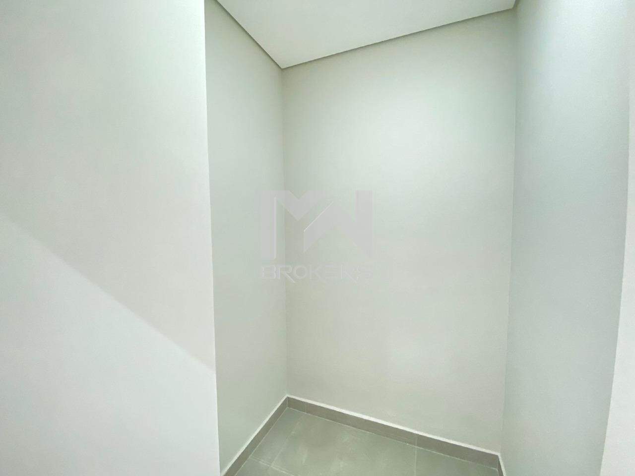 Os pisos, do tipo biancogres, são modernos e de fácil limpeza, enquanto as esquadrias automatizadas, na cor preta, conferem um toque de modernidade e segurança.