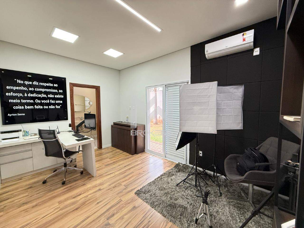 Nos fundos, escritório com banheiro reversível em suíte de hóspedes.