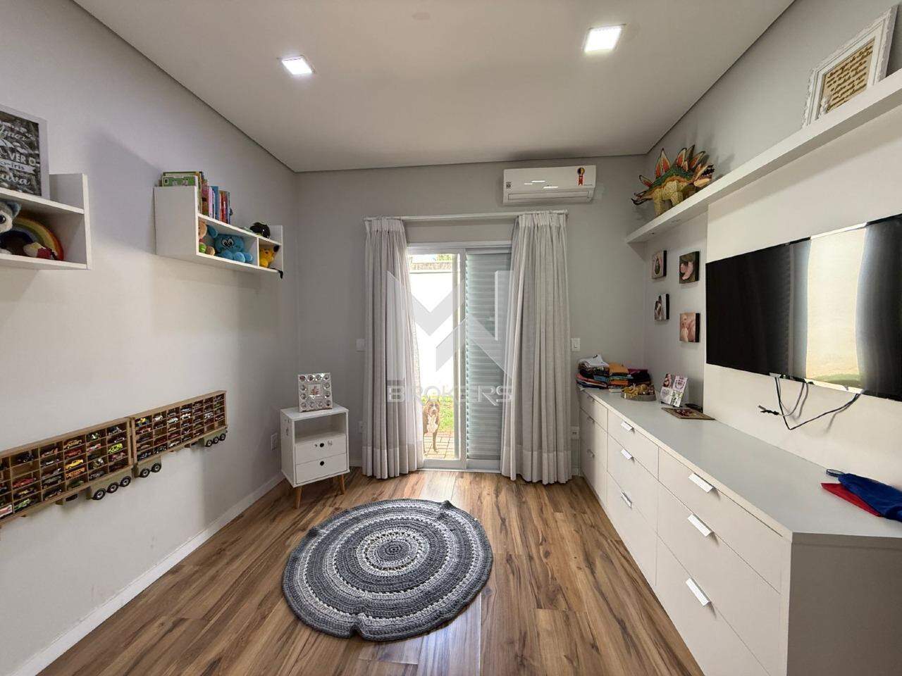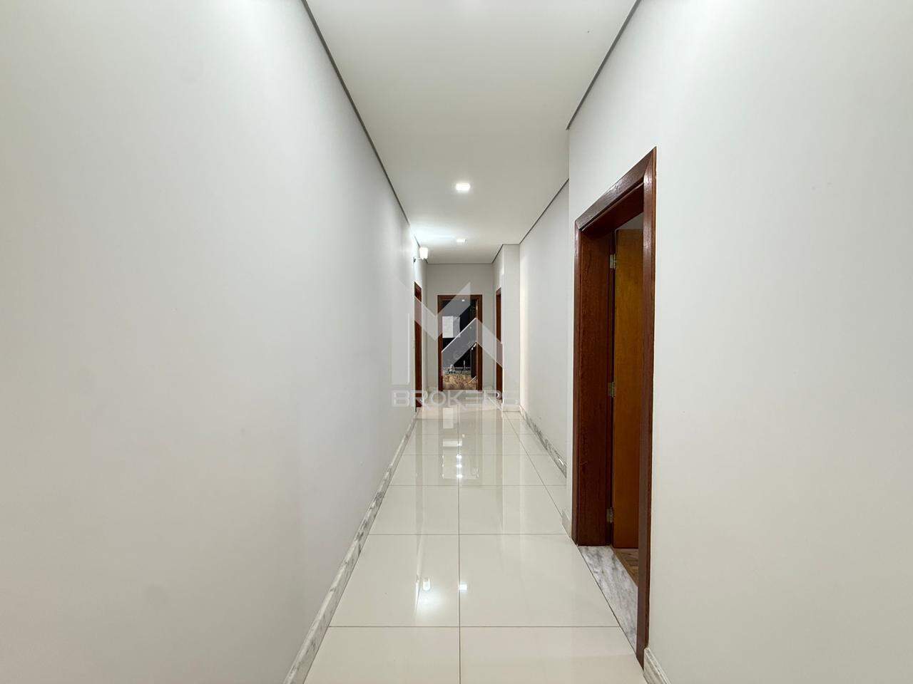 Sala dois ambientes com pé direito alto, lavabo, sala de TV, cozinha com despensa, área de serviços com banheiro de serviços e área gourmet com quintal gramado.