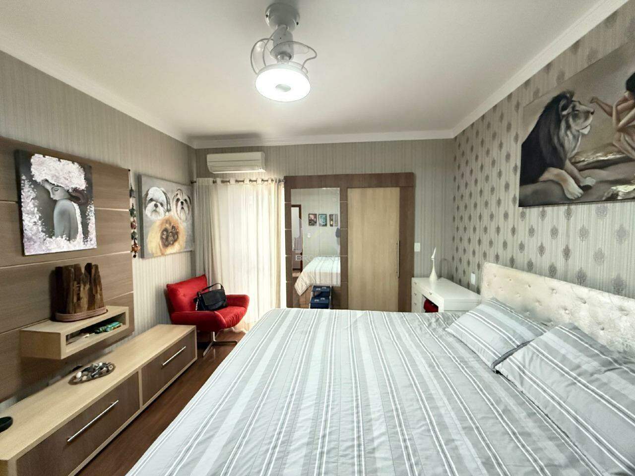 Na área íntima, 03 dormitórios, todos suítes, sendo uma master com closet.