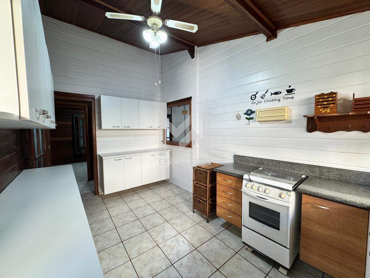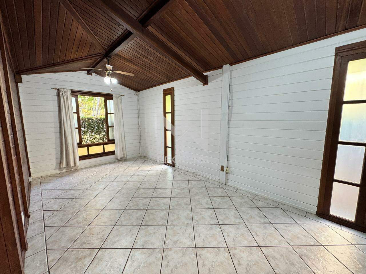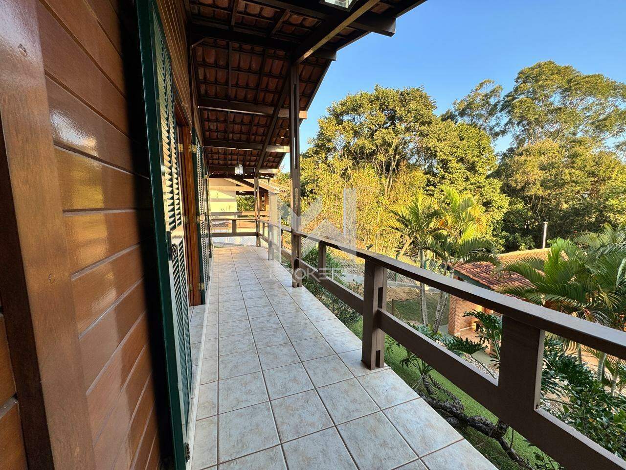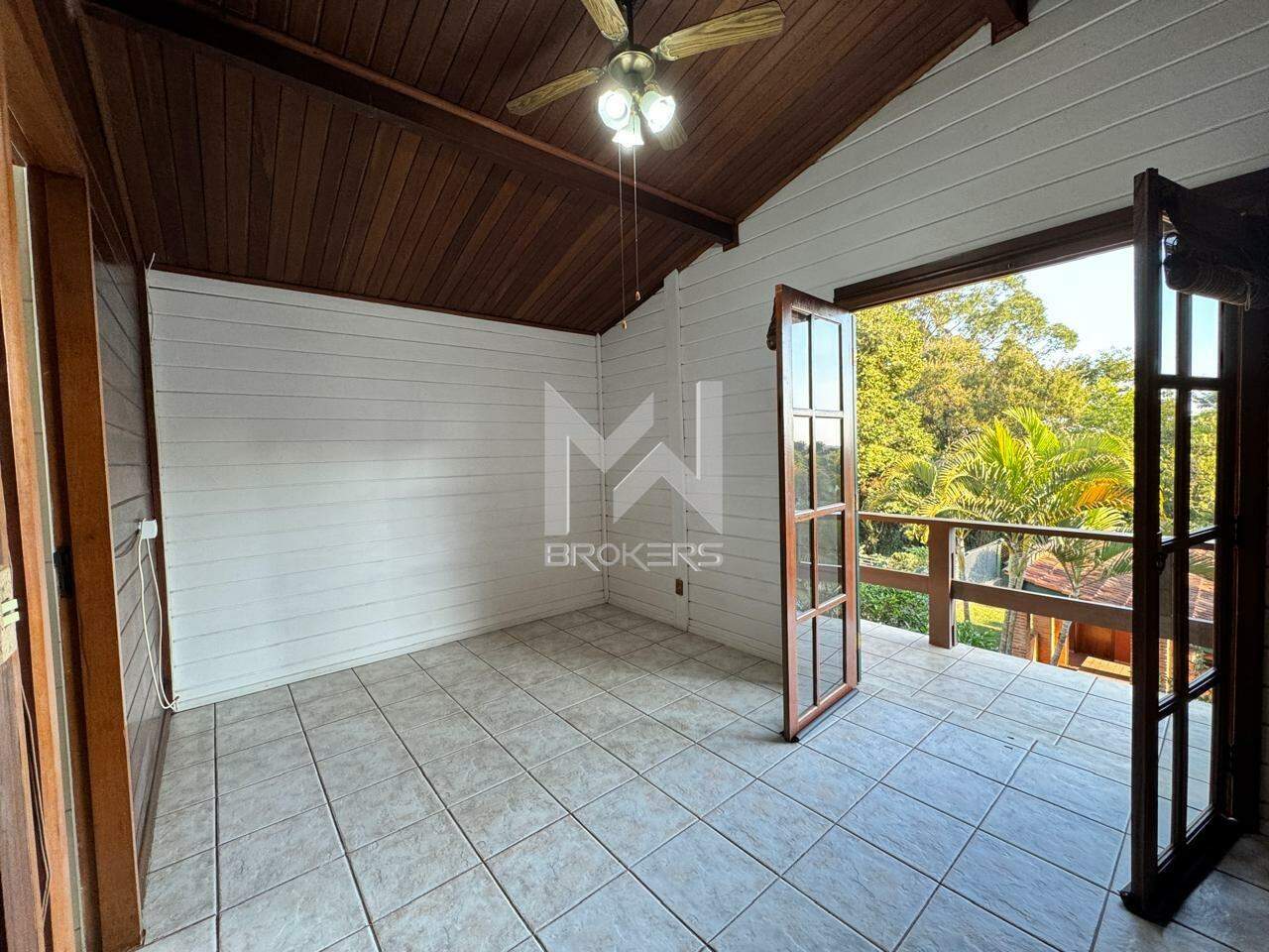 Construída em madeira de lei, a casa oferece fundos sem vizinhos, proporcionando privacidade e contato direto com a natureza. No pavimento inferior, conta com área de lazer completa, piscina, churrasqueira, banheiro de apoio, gramado e amplo quintal. A garagem comporta até 4 veículos, sendo 2 vagas cobertas e 2 descobertas.