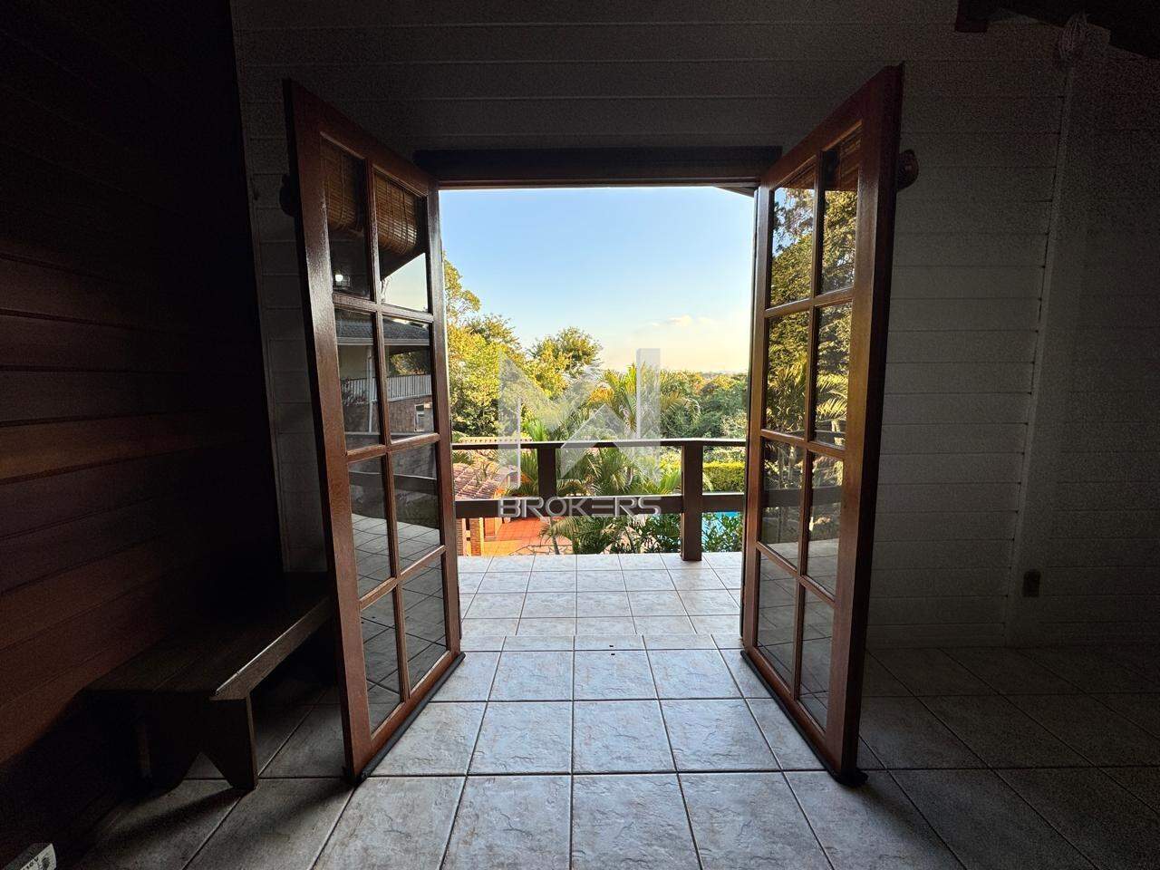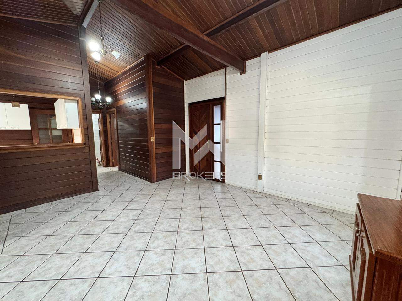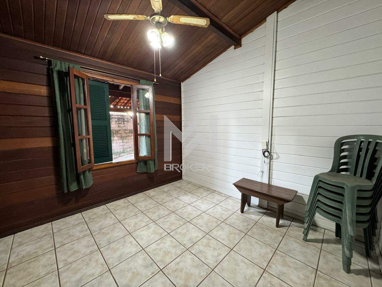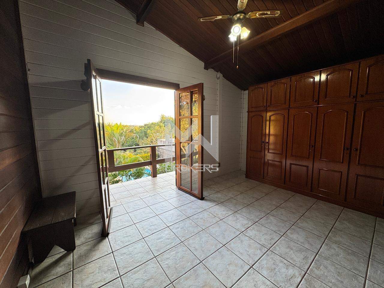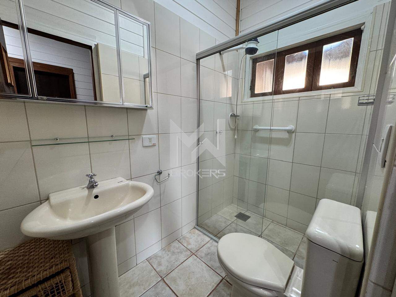 Construída em madeira de lei, a casa oferece fundos sem vizinhos, proporcionando privacidade e contato direto com a natureza. No pavimento inferior, conta com área de lazer completa, piscina, churrasqueira, banheiro de apoio, gramado e amplo quintal. A garagem comporta até 4 veículos, sendo 2 vagas cobertas e 2 descobertas.