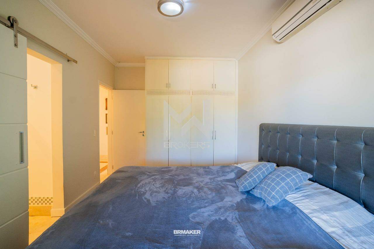 Hall íntimo em mármore, com armário embutido e 03 dormitórios com armários, sendo 1 suíte com piso em mármore crema marfil, hidro e ducha separados.