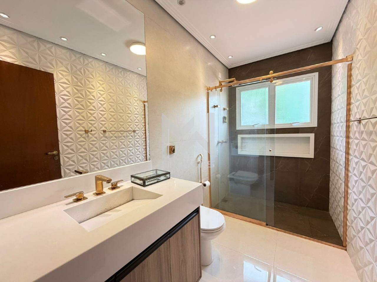 Sala de estar, lavabo, cozinha com copa e área de serviços. Área íntima com 03 dormitórios, sendo uma suíte master com porta balcão automatizada, closet, banheira de hidromassagem e cuba dupla e uma suíte com escritório.