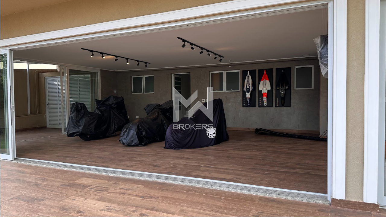 O imóvel possui garagem coberta para 7 carros, além de escritório com dormitório contíguos à garagem.