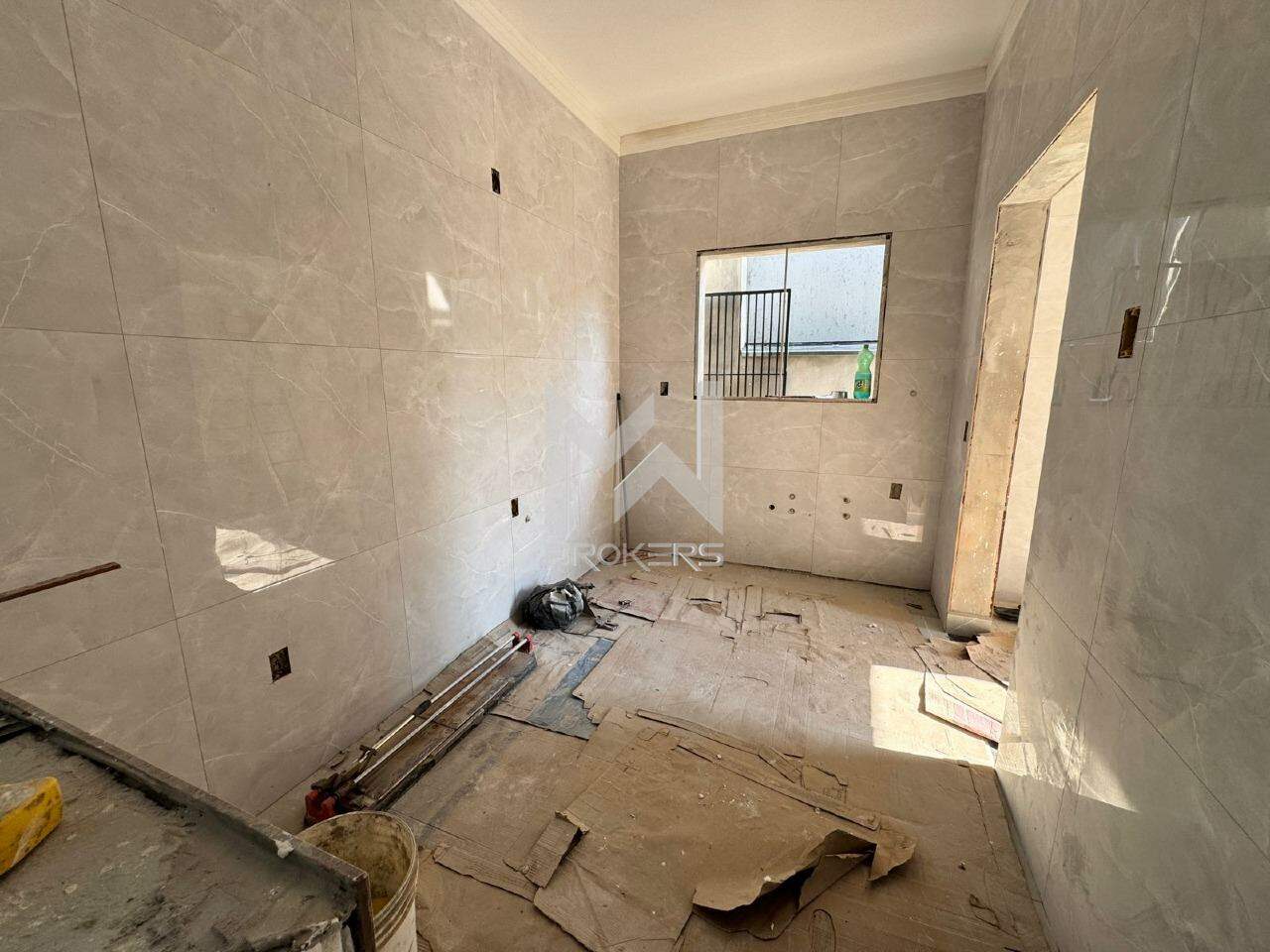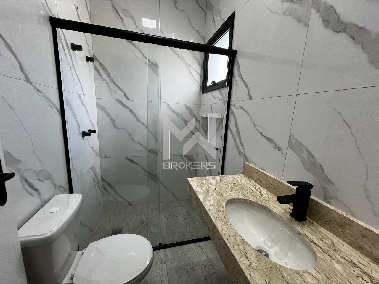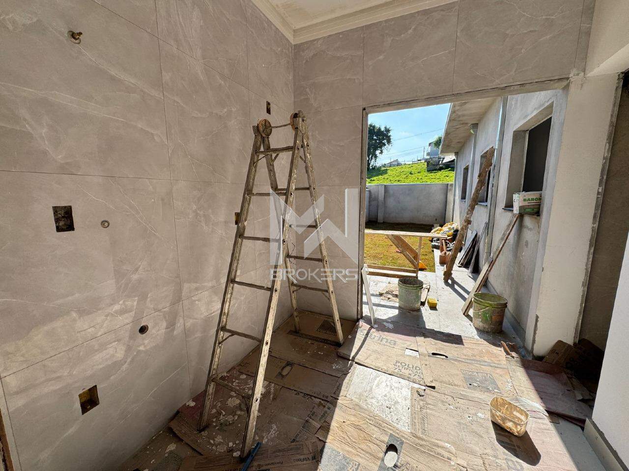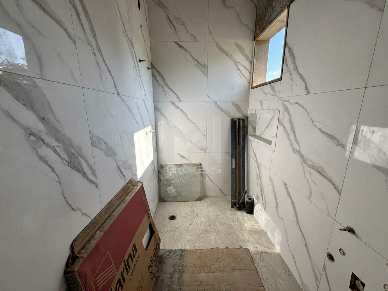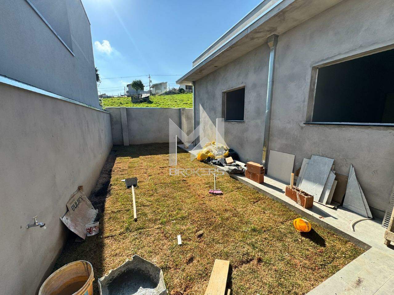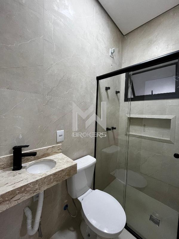 Casa térrea nova em fase final de acabamento à venda no Jardim das Videiras, Vinhedo/SP. O imóvel conta com sala de estar com pé-direito alto e sanca com iluminação indireta, cozinha em porcelanato polido, banheiro social e área de serviço externa.