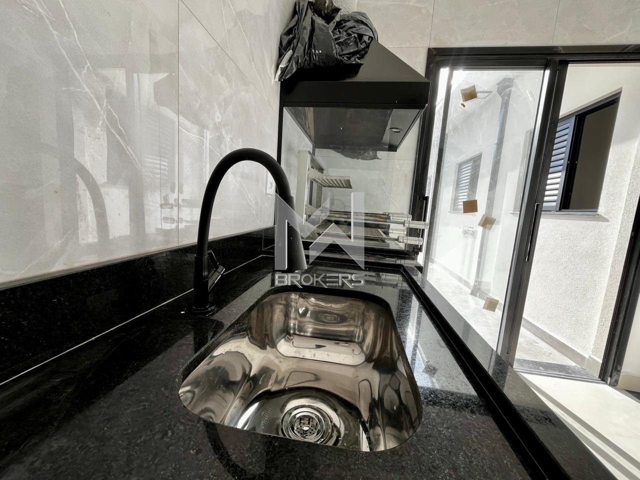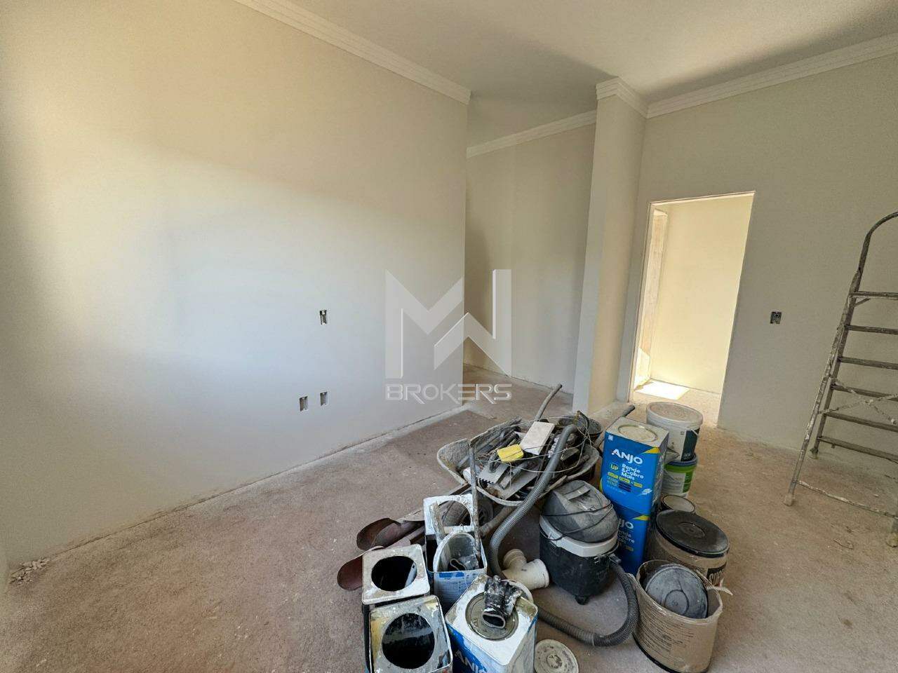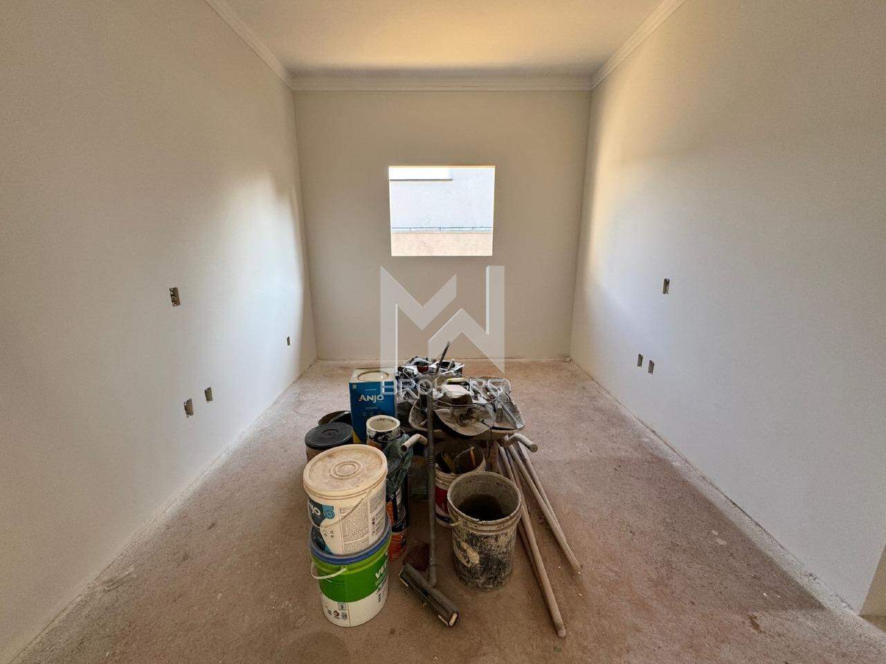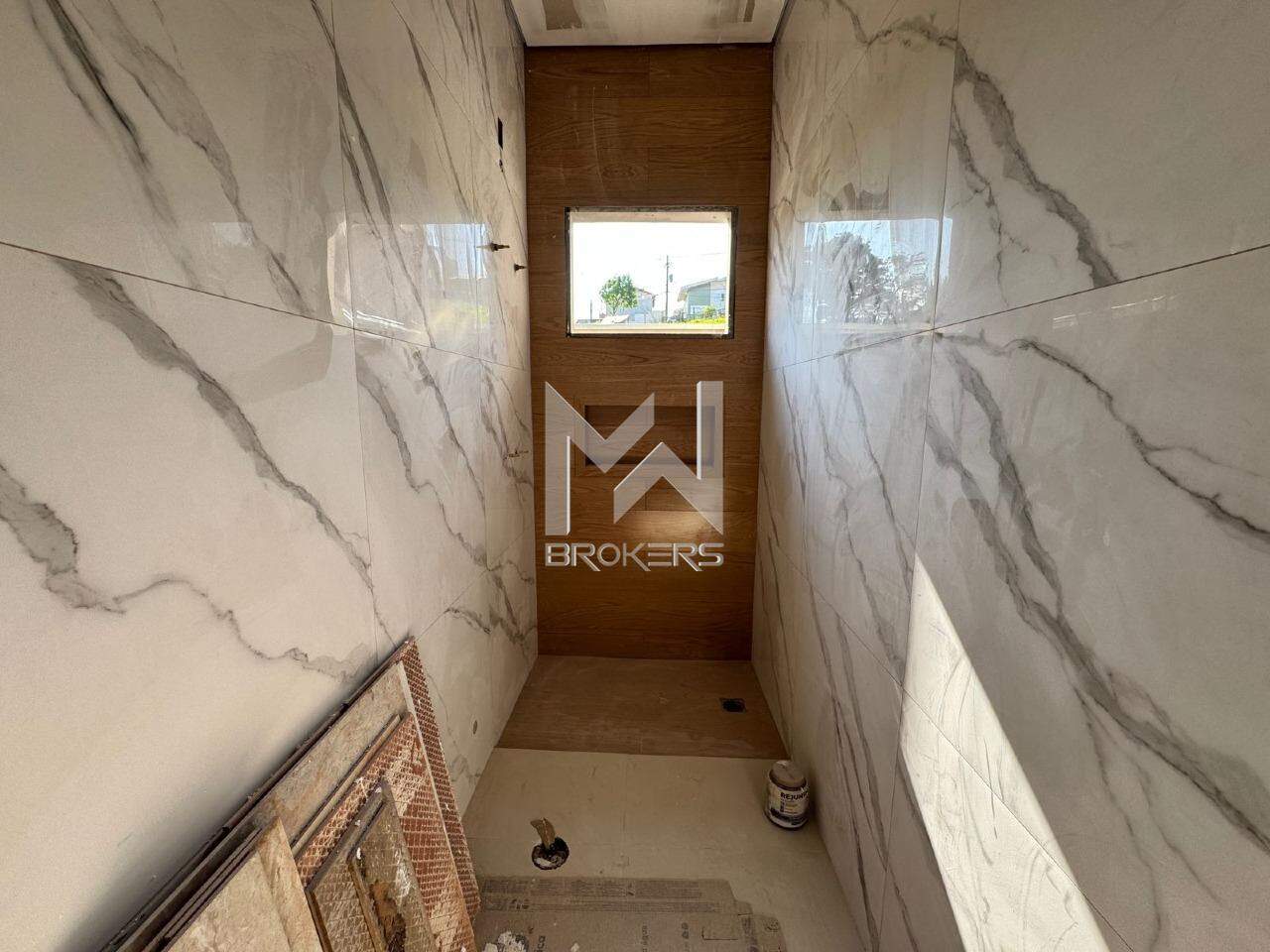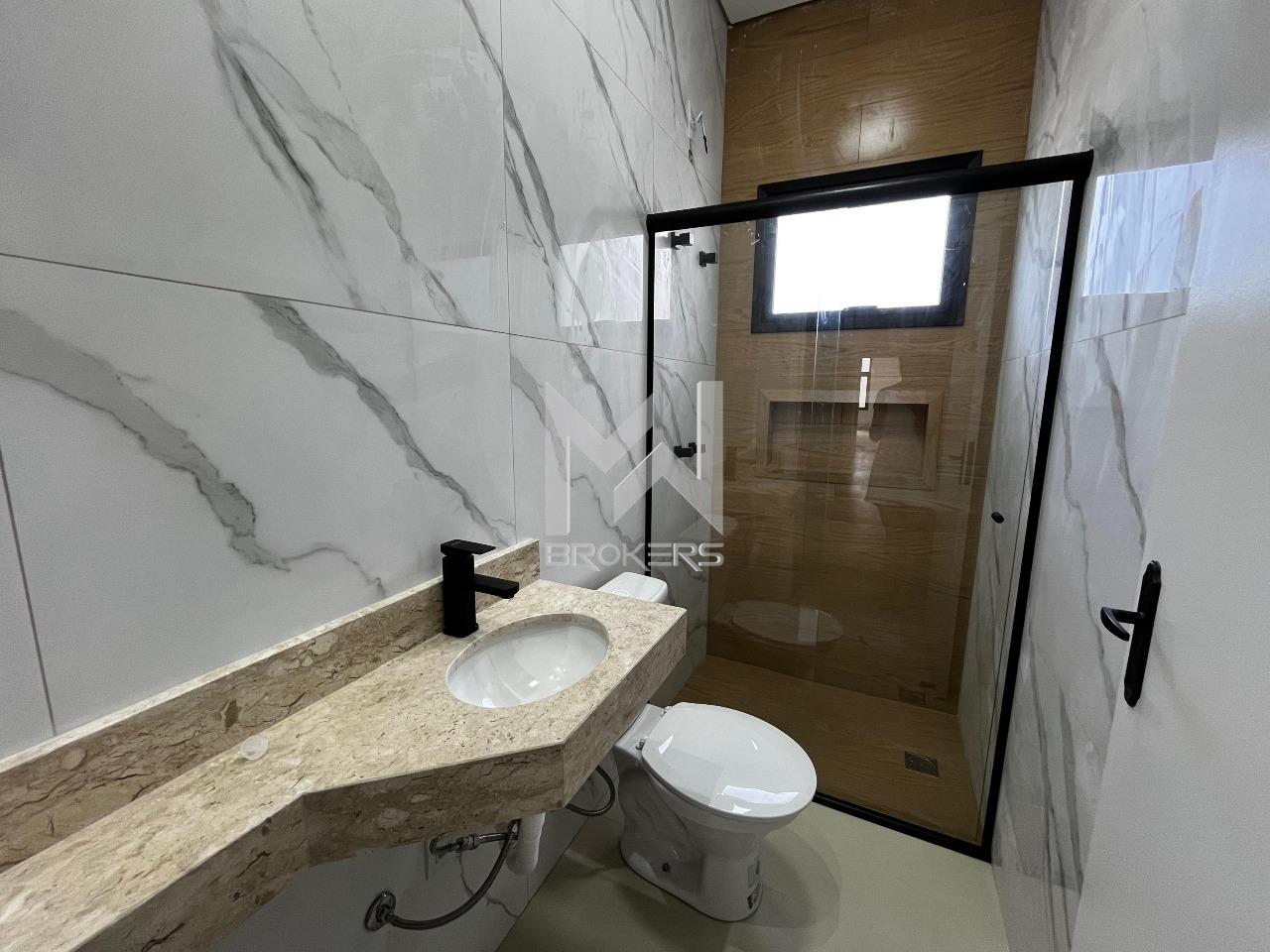 Casa térrea nova em fase final de acabamento à venda no Jardim das Videiras, Vinhedo/SP. O imóvel conta com sala de estar com pé-direito alto e sanca com iluminação indireta, cozinha em porcelanato polido, banheiro social e área de serviço externa.