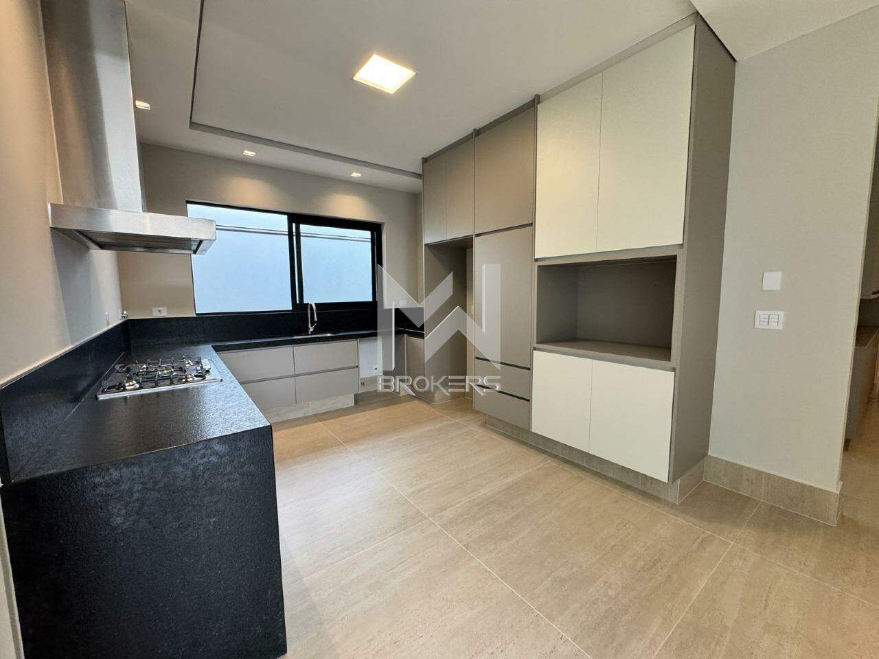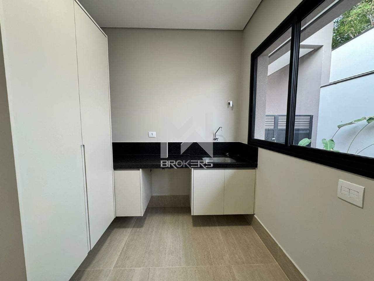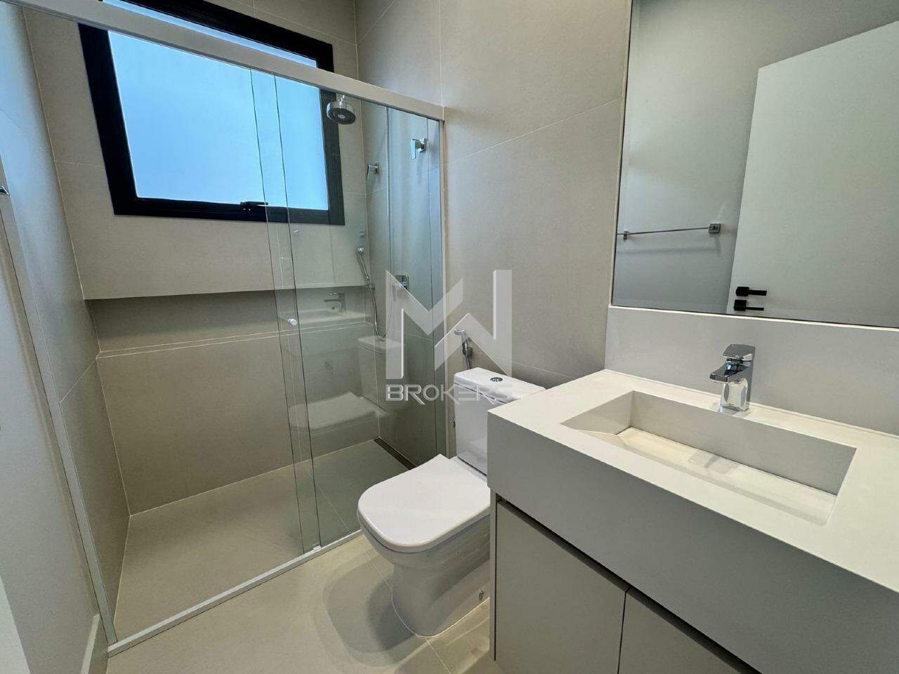 Casa térrea de alto padrão no Condomínio Marambaia, em Vinhedo/SP, com entrega prevista para setembro de 2025. O projeto conta com sala de estar com pé-direito duplo integrada ao escritório com vista para o paisagismo e lavabo. A área gourmet é conectada à cozinha planejada, equipada com armários e eletrodomésticos, além de despensa e lavanderia.