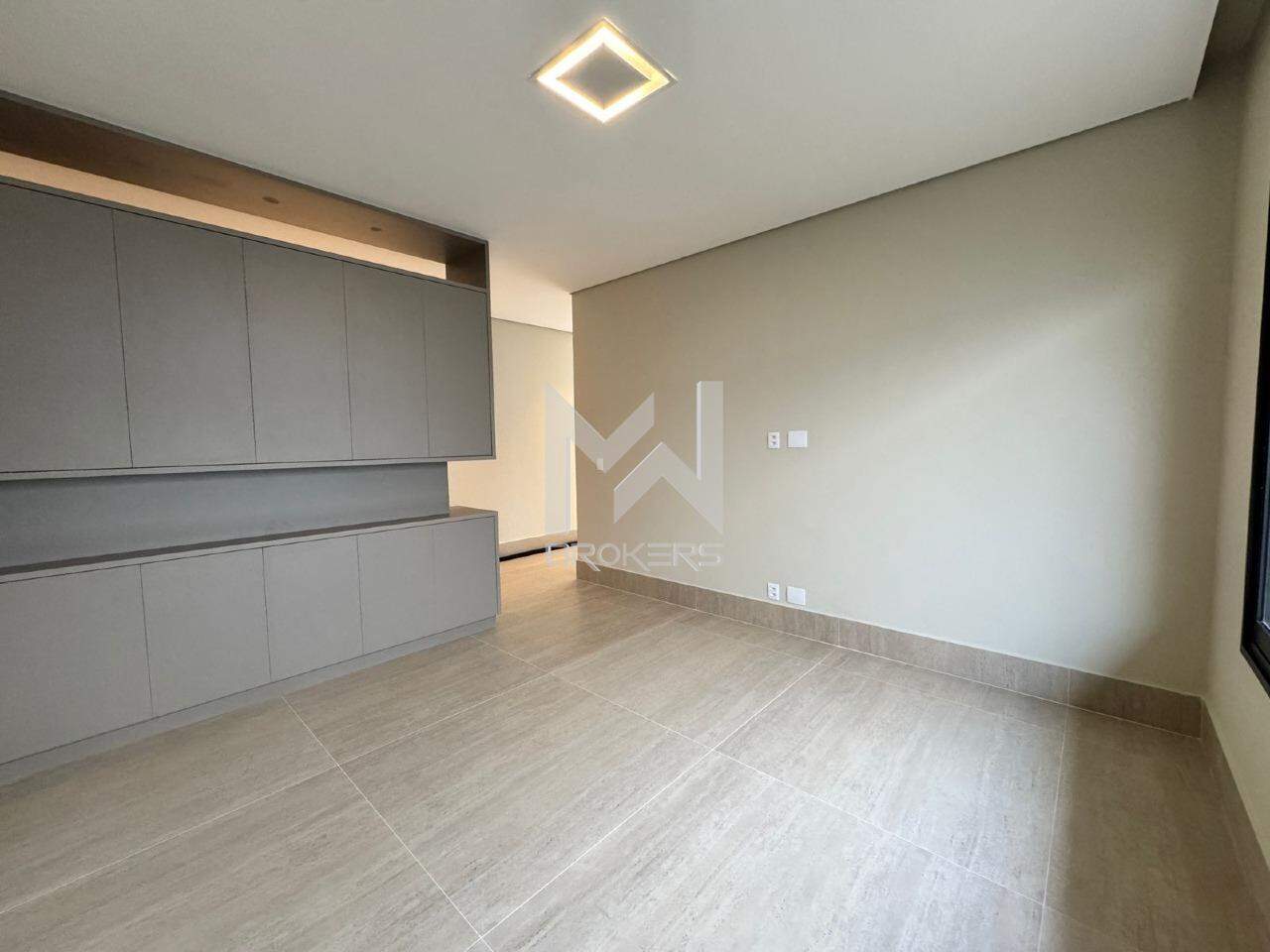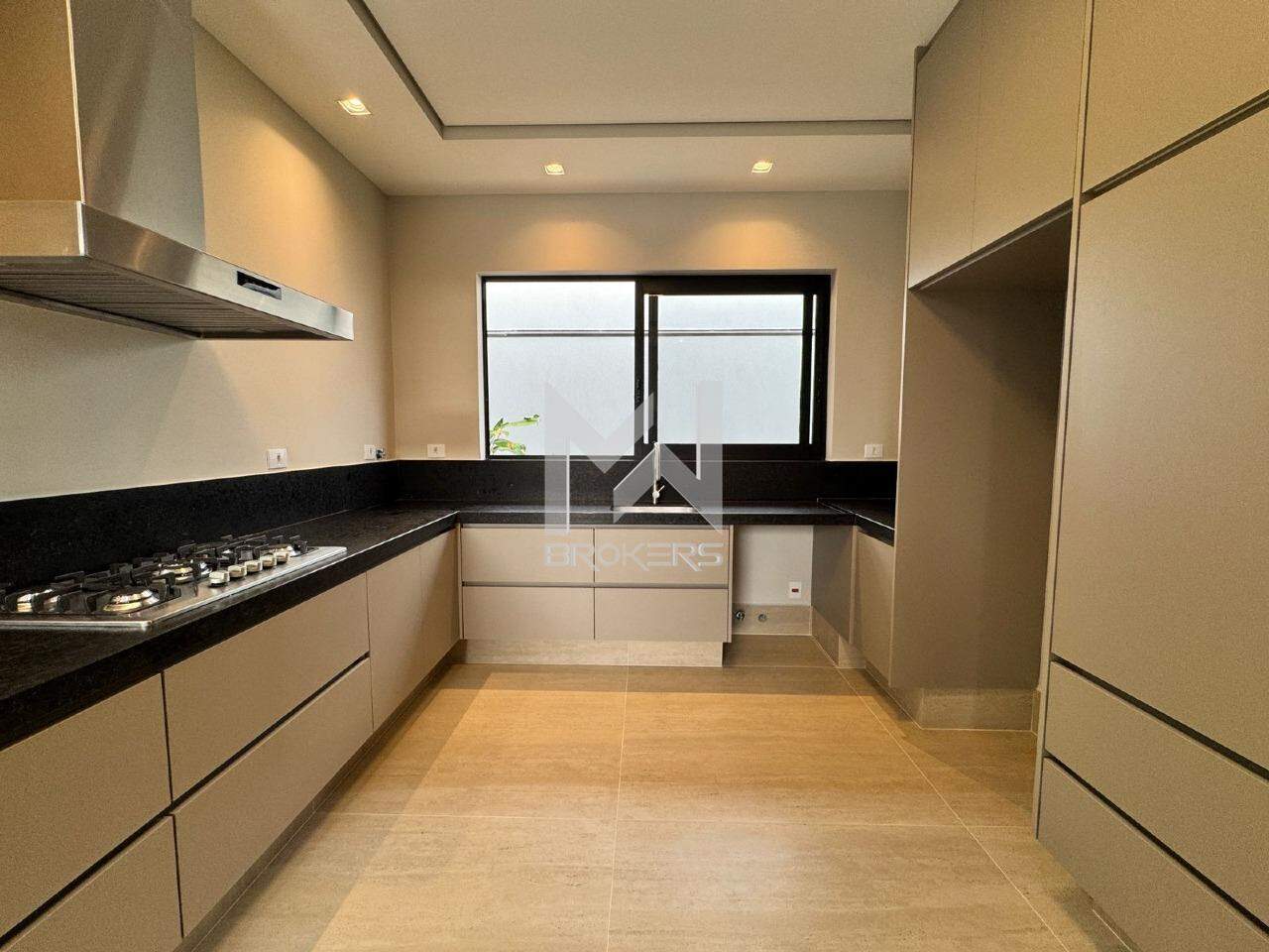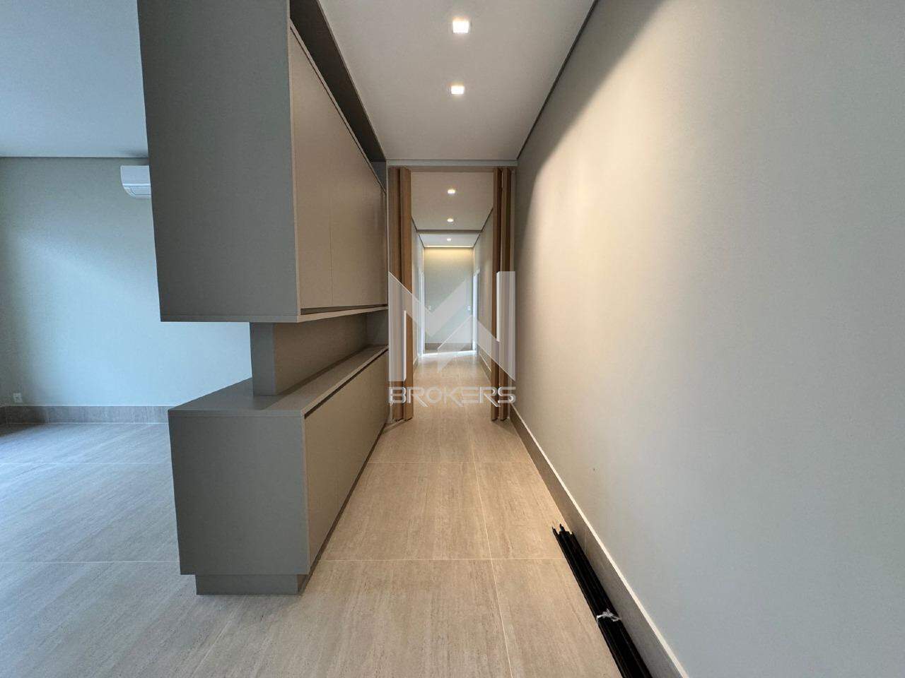 Casa térrea de alto padrão no Condomínio Marambaia, em Vinhedo/SP, com entrega prevista para setembro de 2025. O projeto conta com sala de estar com pé-direito duplo integrada ao escritório com vista para o paisagismo e lavabo. A área gourmet é conectada à cozinha planejada, equipada com armários e eletrodomésticos, além de despensa e lavanderia.
