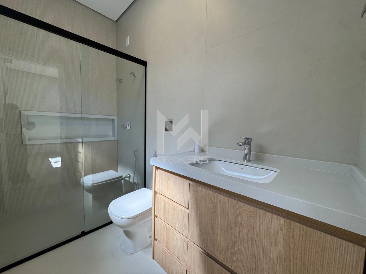 Esta residência de **design contemporâneo** destaca-se pela funcionalidade e sofisticação de uma construção recém-finalizada. Com um projeto inteligente que privilegia a integração de ambientes e a iluminação natural, o imóvel oferece o máximo em conforto e modernidade.