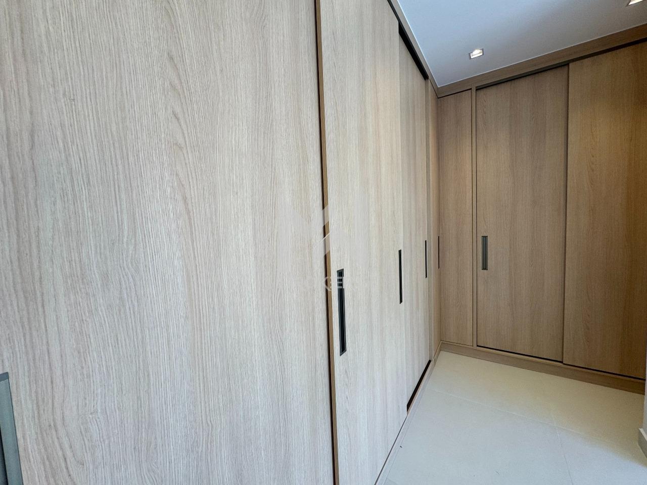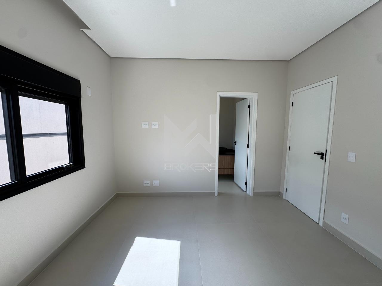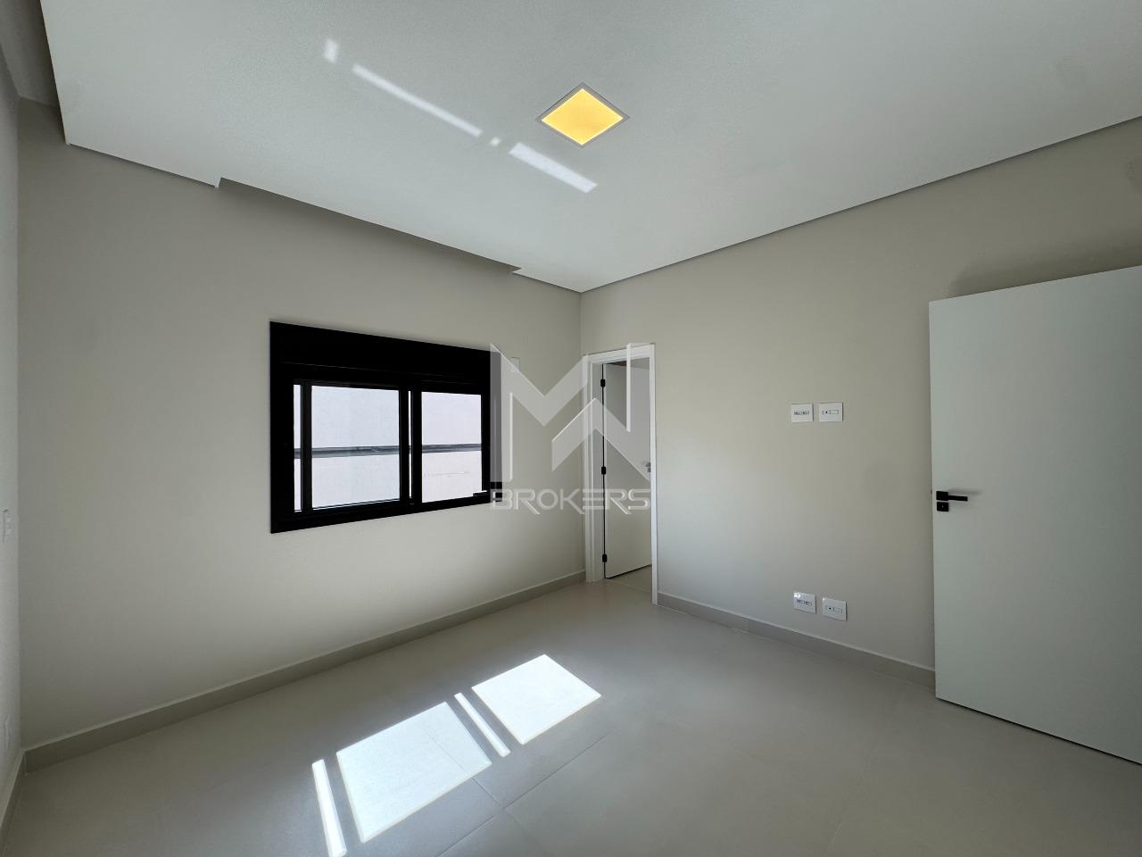 A área íntima dispõe de **4 suítes**, sendo a master equipada com armários planejados e banheiro com duas cubas. Todos dormitórios contam com janelas dotadas de **persianas automatizadas**, garantindo praticidade e privacidade.