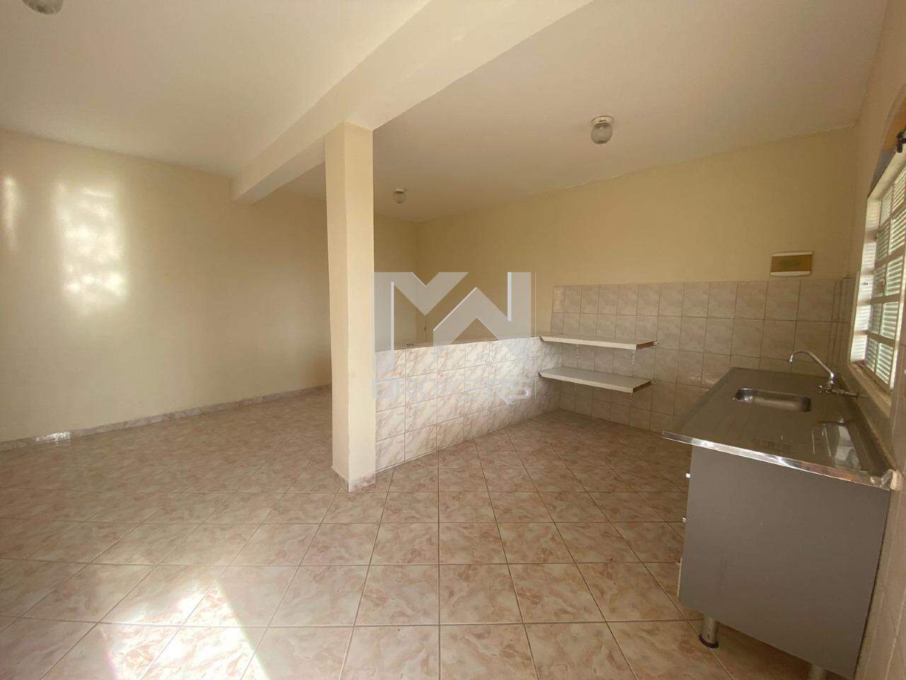 Nos fundos, edícula independente com sala e cozinha integradas e suíte.