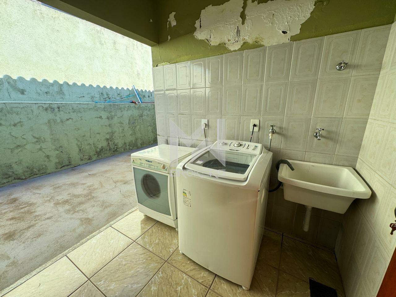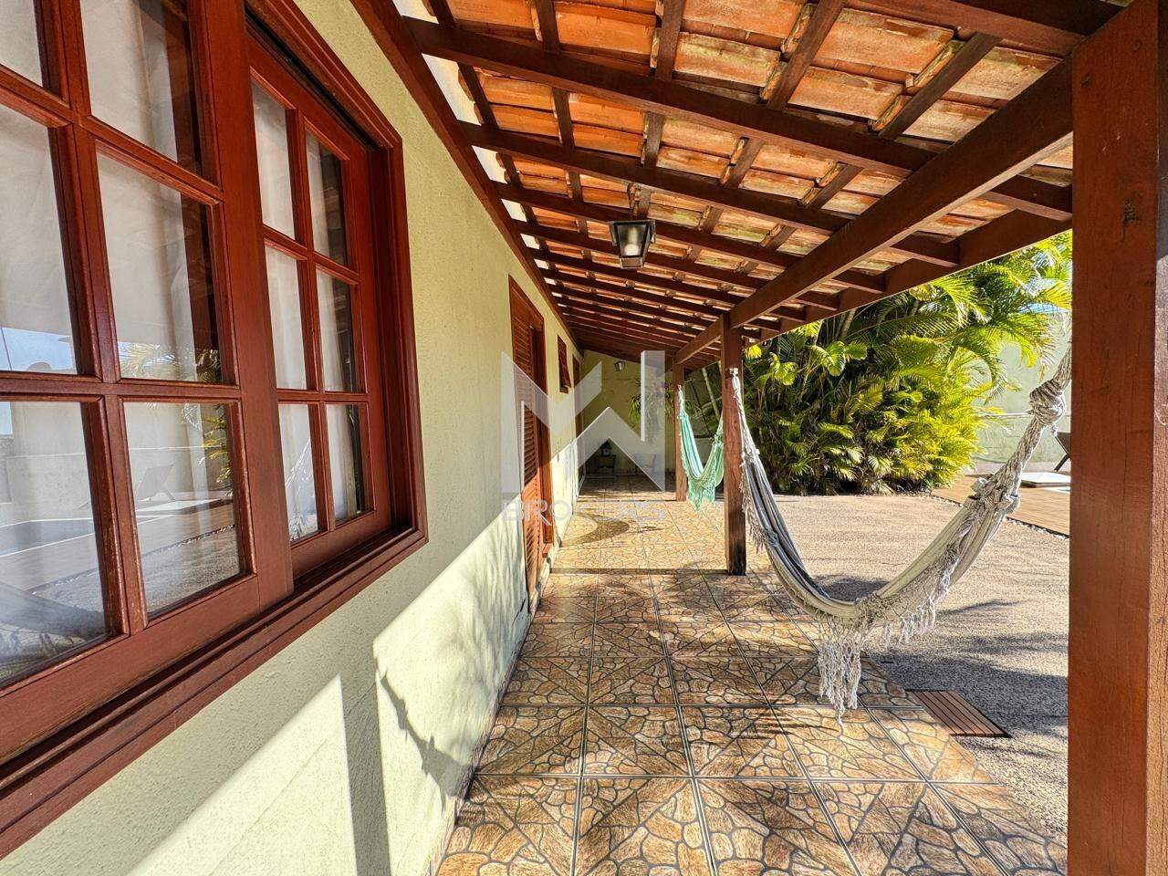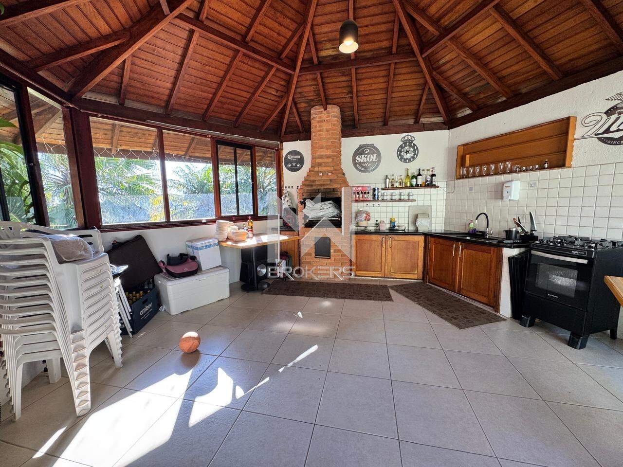 O imóvel possui área gourmet com churrasqueira, gramado e piscina.
