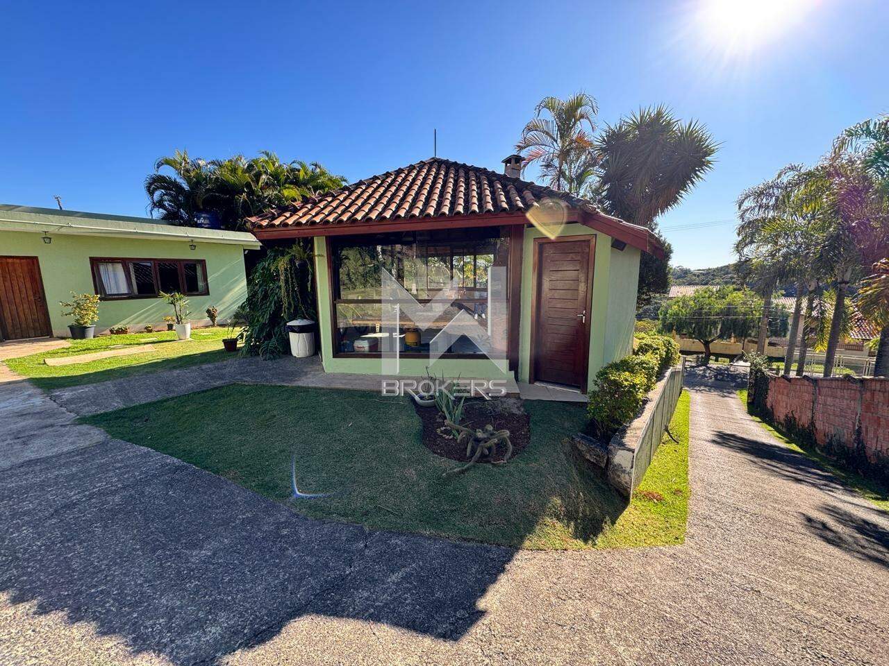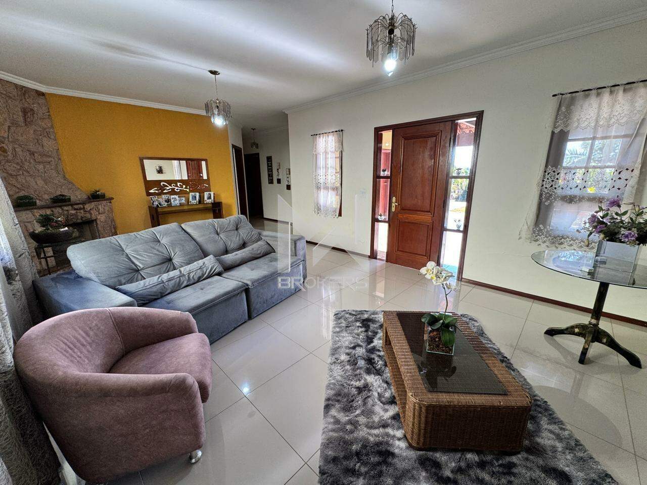 Casa principal com sala de estar com lareira, sala de refeições, escritório, cozinha com copa, área de serviços e 3 dormitórios, sendo 01 suíte.