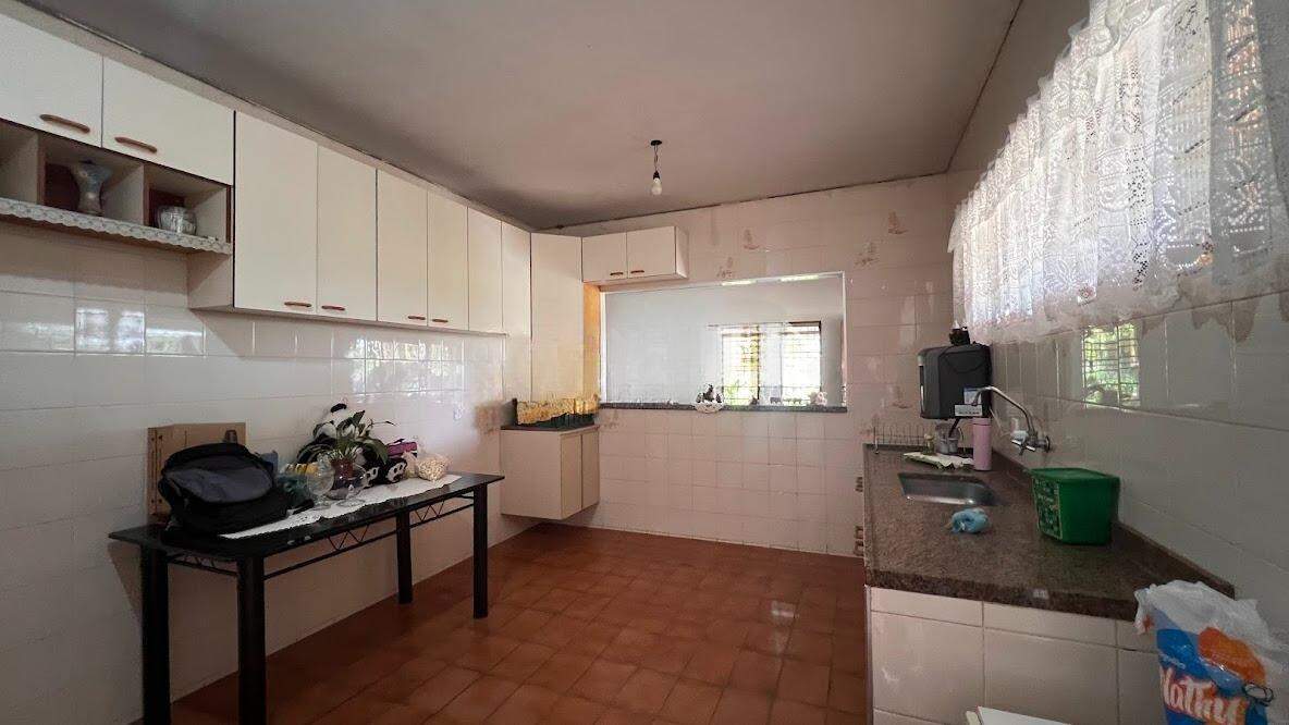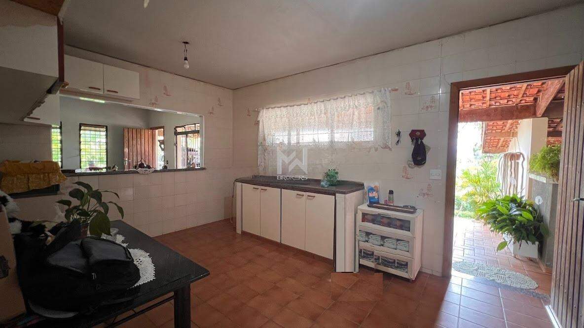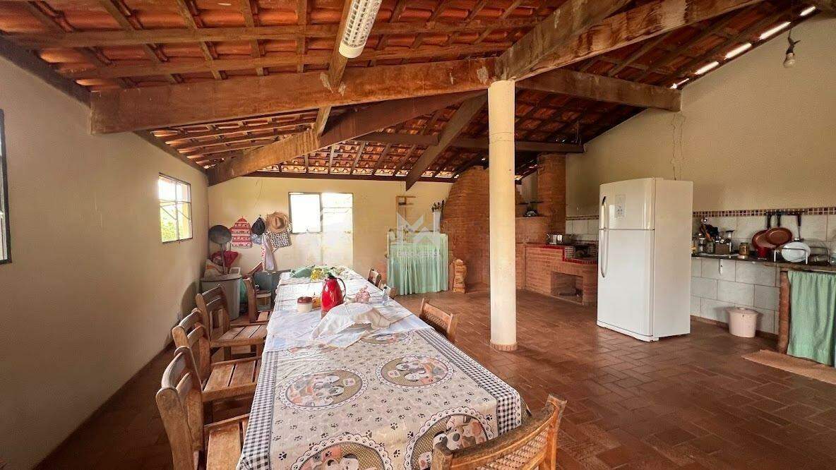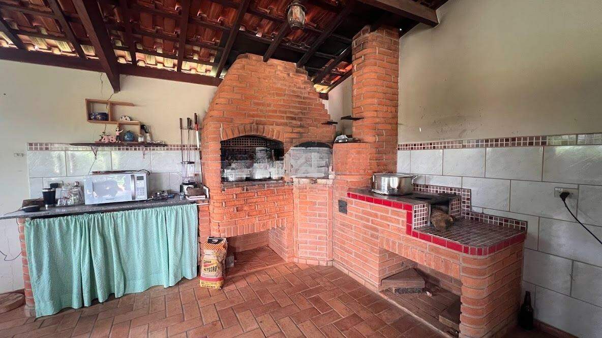 Possui área gourmet com fogão à lenha, churrasqueira e cozinha completa.