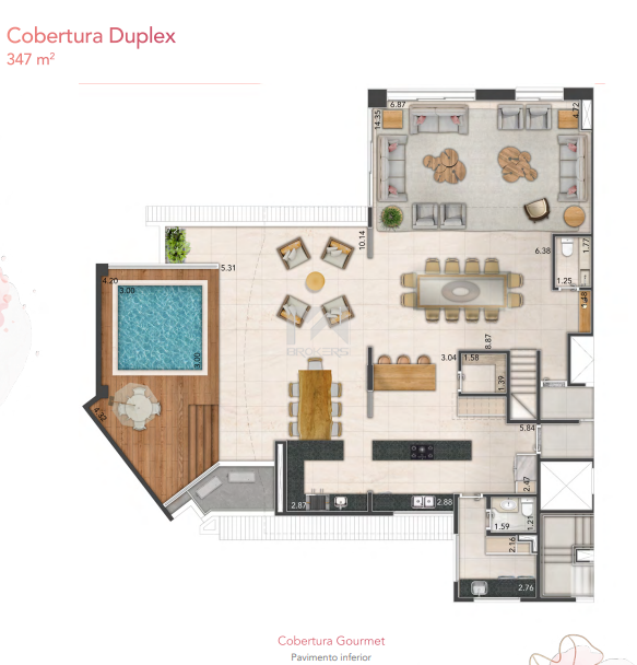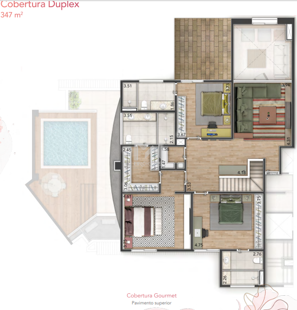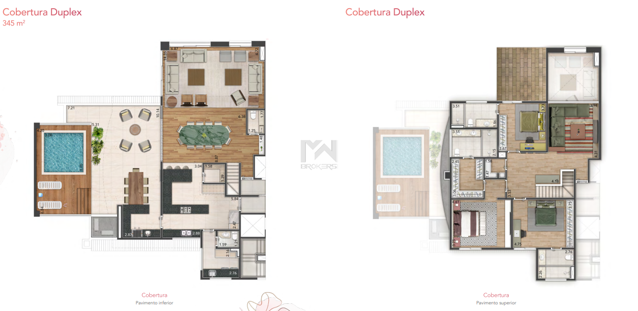 Cobertura Duplex: 345 m² a 347 m²