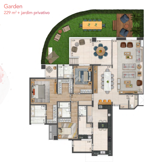 Apartamentos Garden: 229 m² a 235 m² + jardim privativo
