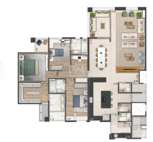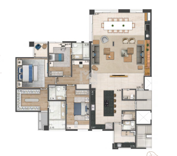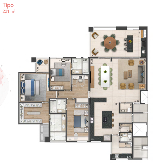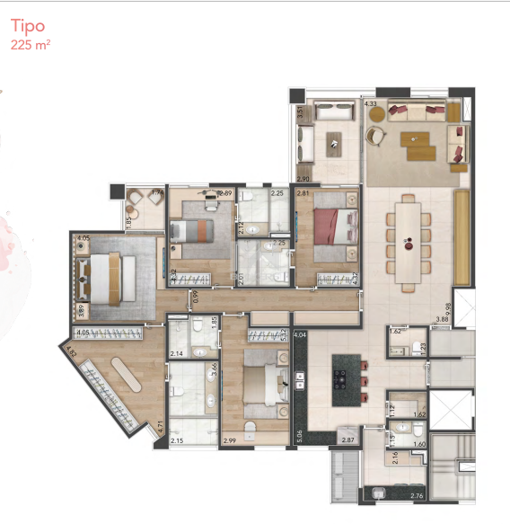 Apartamentos tipo: 221 m² a 225 m²