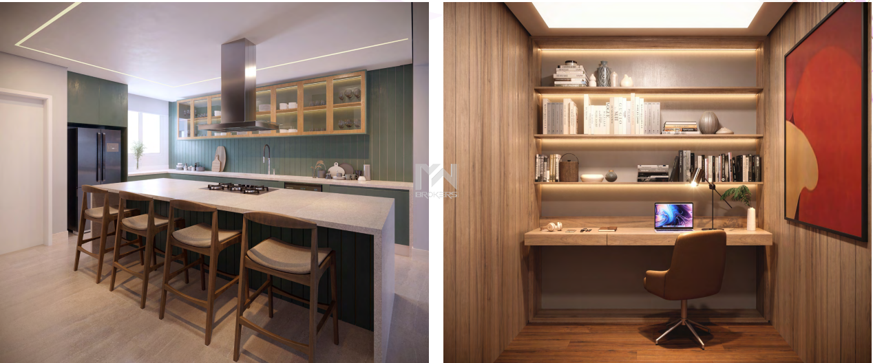 Serão entregues com piso em todos os ambientes, persiana elétrica nos dormitórios, forro de gesso em todos os ambientes e rede frigorígena de ar condicionado.