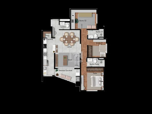 Cada unidade possui 3 dormitórios, sendo uma suíte, além de lavabo, despensa e 2 vagas de garagem.