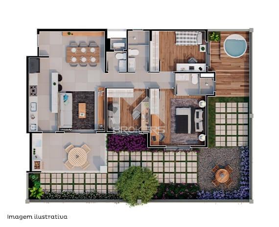 Para aqueles que valorizam ainda mais o contato com a natureza, nossas unidades garden são ideais. Com 150,86 m², essas unidades contam com 3 dormitórios, sendo 1 suíte, e um quintal privativo com espaço gourmet. Você poderá desfrutar de momentos incríveis ao ar livre, sem abrir mão do conforto e da privacidade.