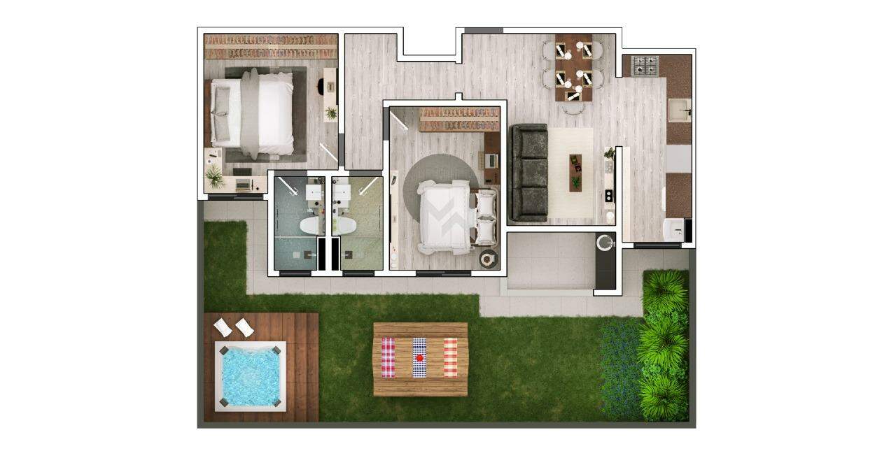 Garden tipo 3 (menor): 95,15m² (70,31m² + 24,84m²)