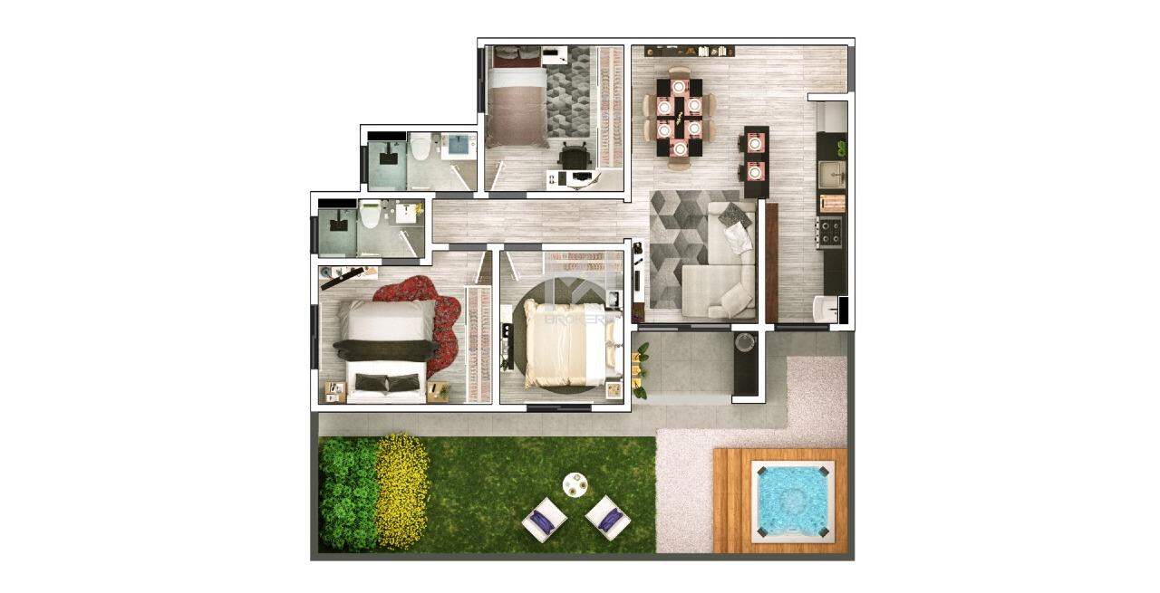 Garden tipo 3 (maior): 106,03m² (70,31m² + 35,72m²)