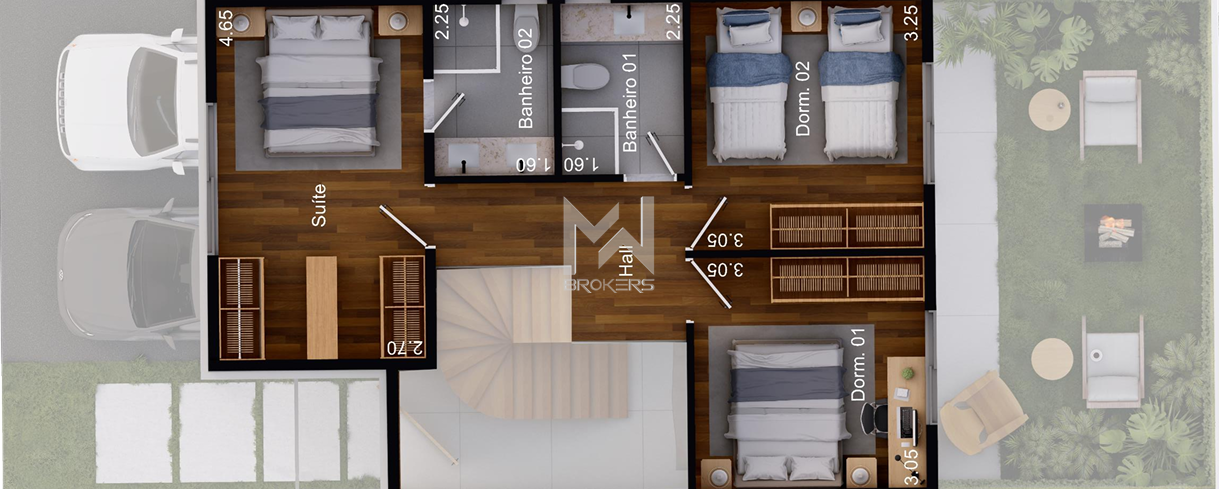 Casas com 110m² com 02 pavimentos e 03 dormitórios, sendo 01 suíte.
