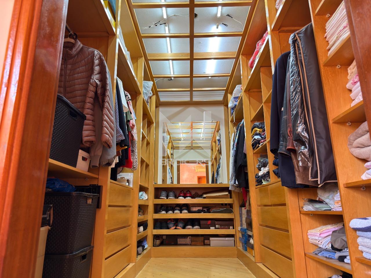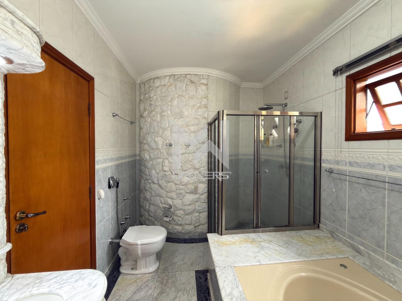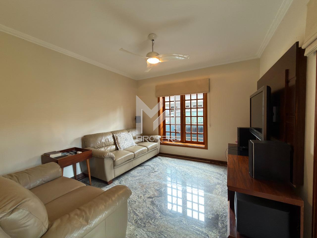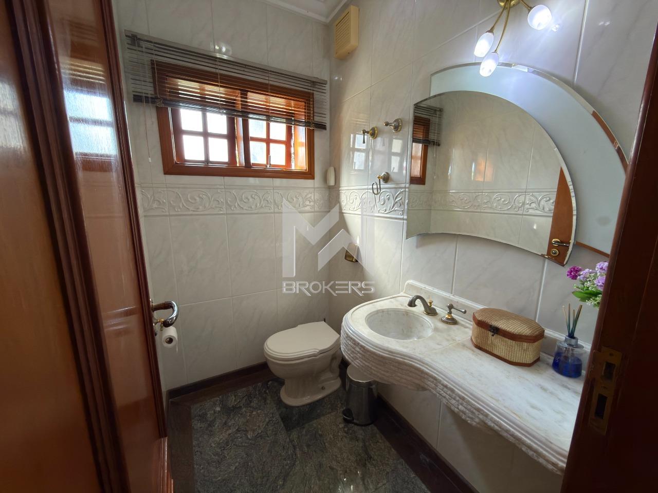 O imóvel dispõe de ampla sala de estar com lareira, lavabo, sala de refeições e sala de TV, além de escritório, ideal para quem trabalha em home office. A cozinha é espaçosa, com despensa, e integrada à área de serviços, que conta com dependência de doméstica.