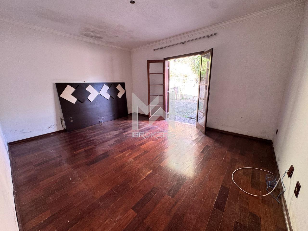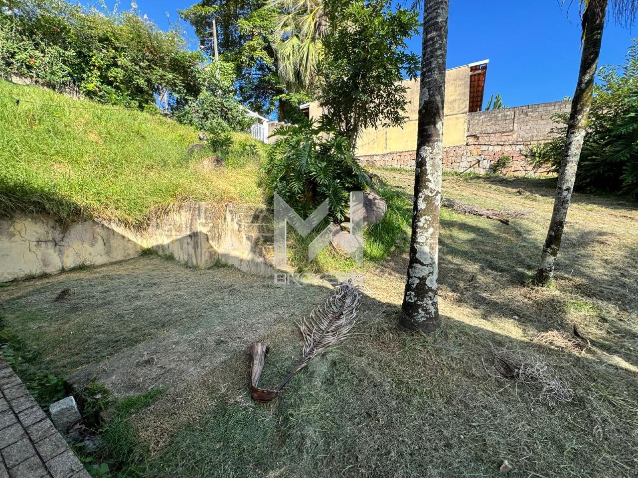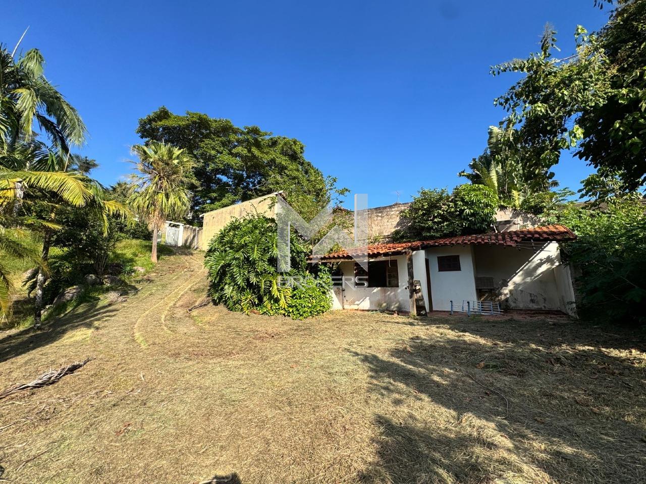 O lote possui topografia em declive, com área plana já aproveitada pela casa existente de aproximadamente 199 m², permitindo reforma e modernização (retrofit) ou demolição para novo projeto.
